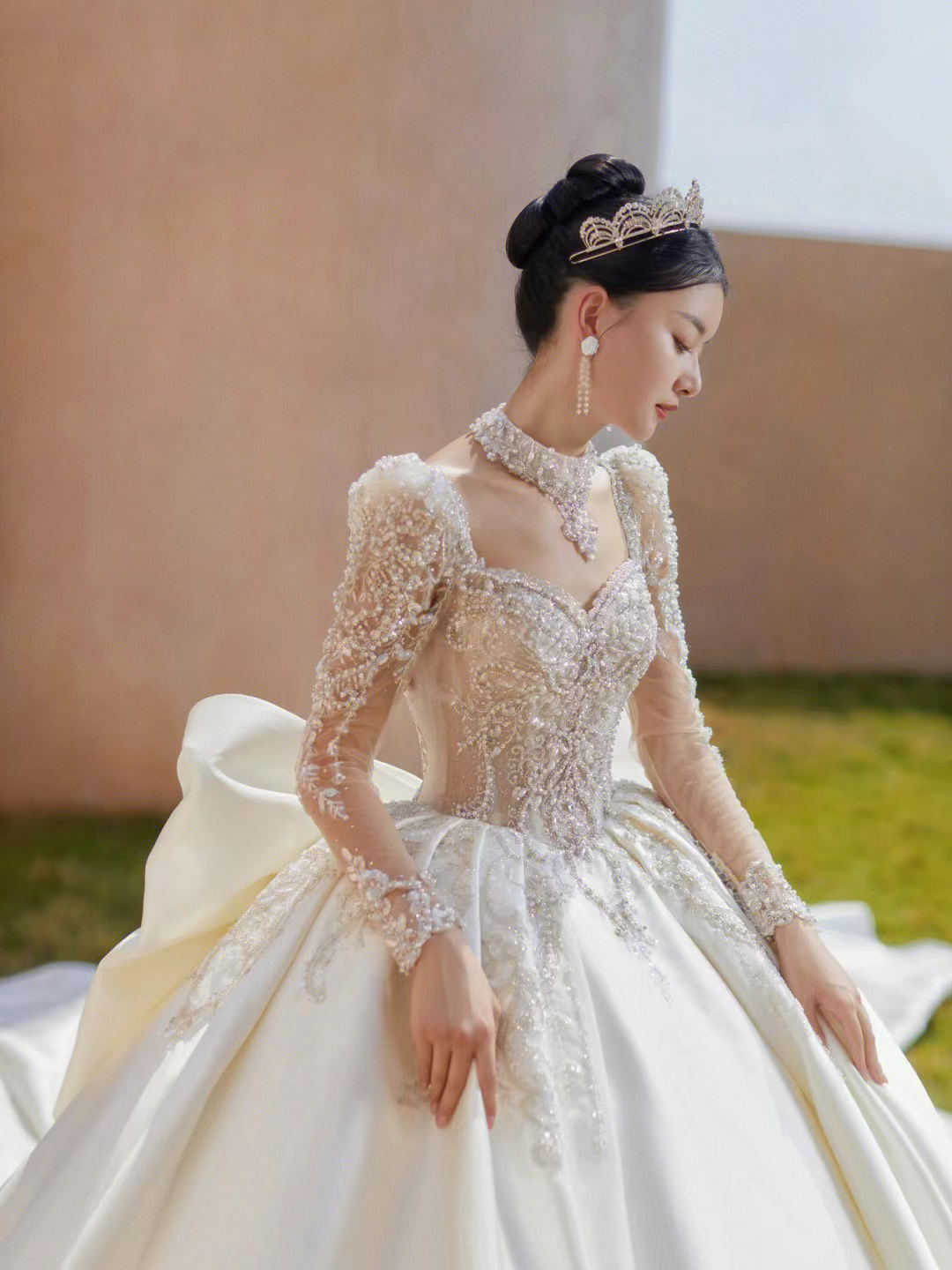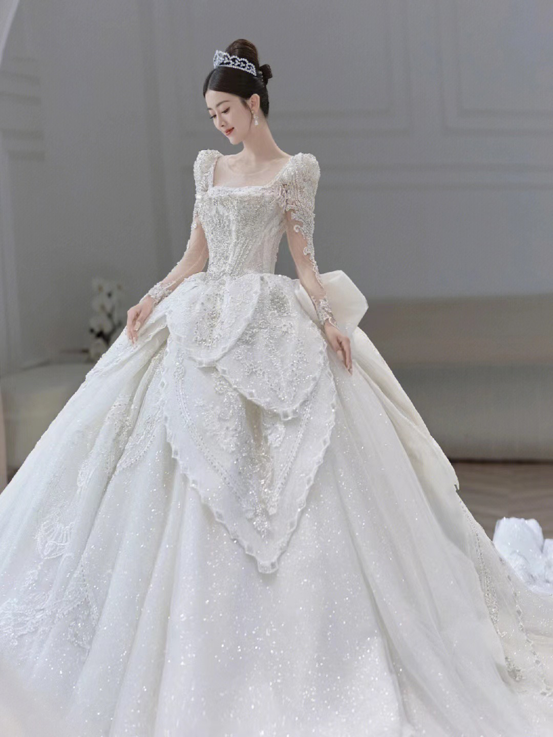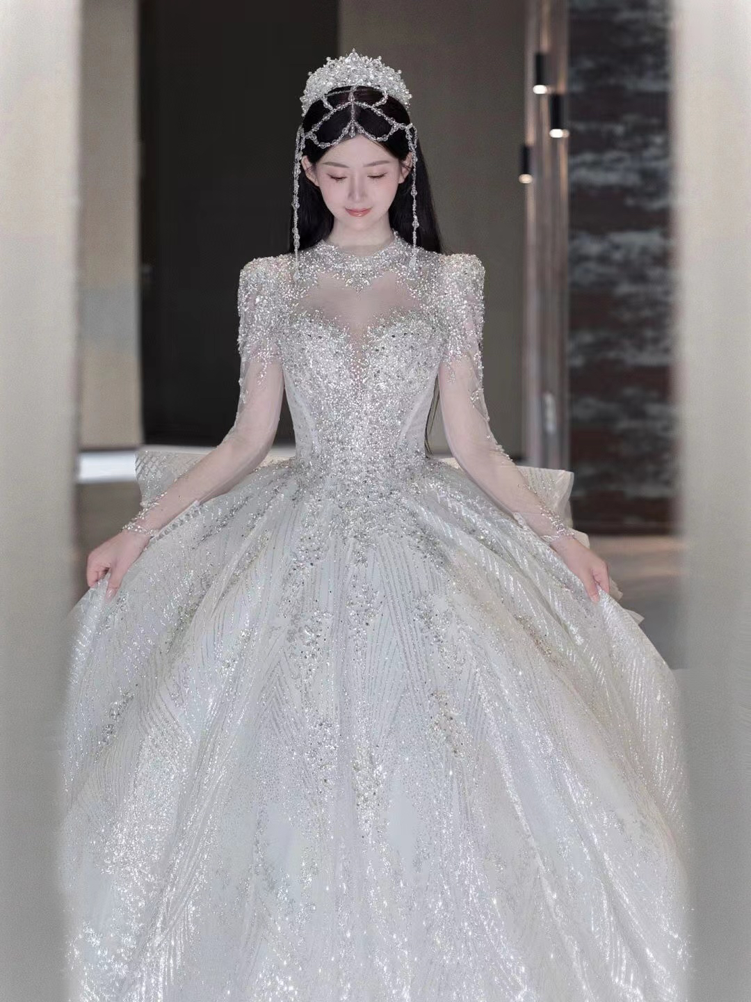 圣白|长袖重工缎面主纱