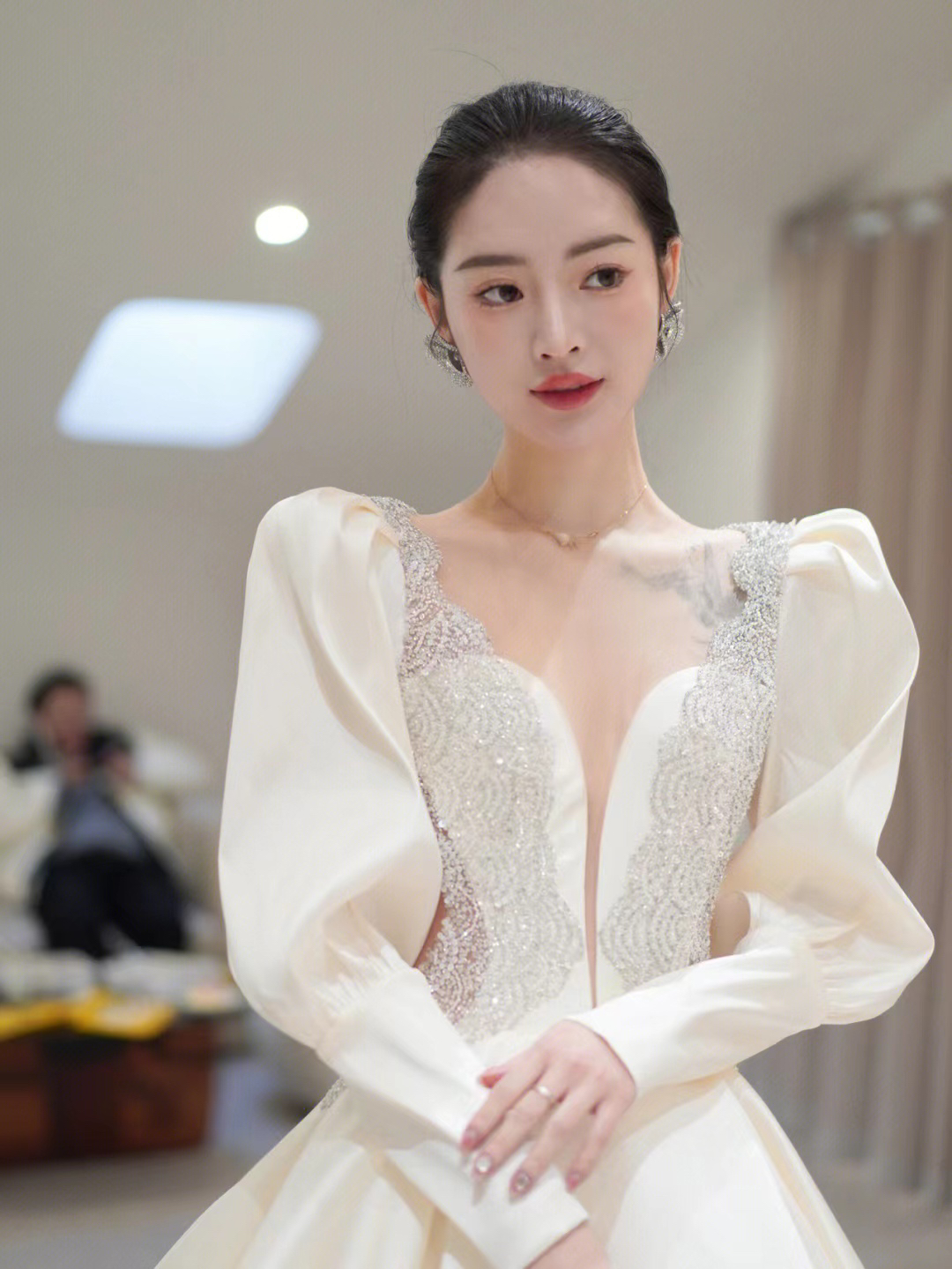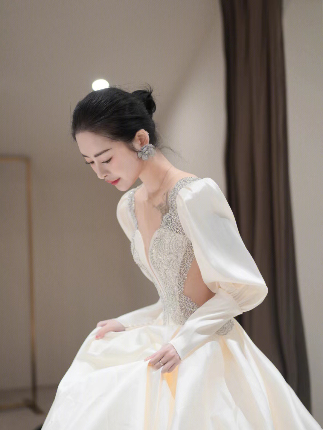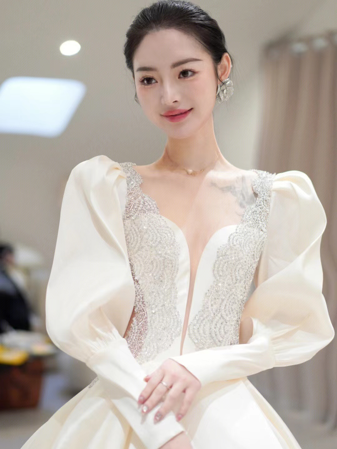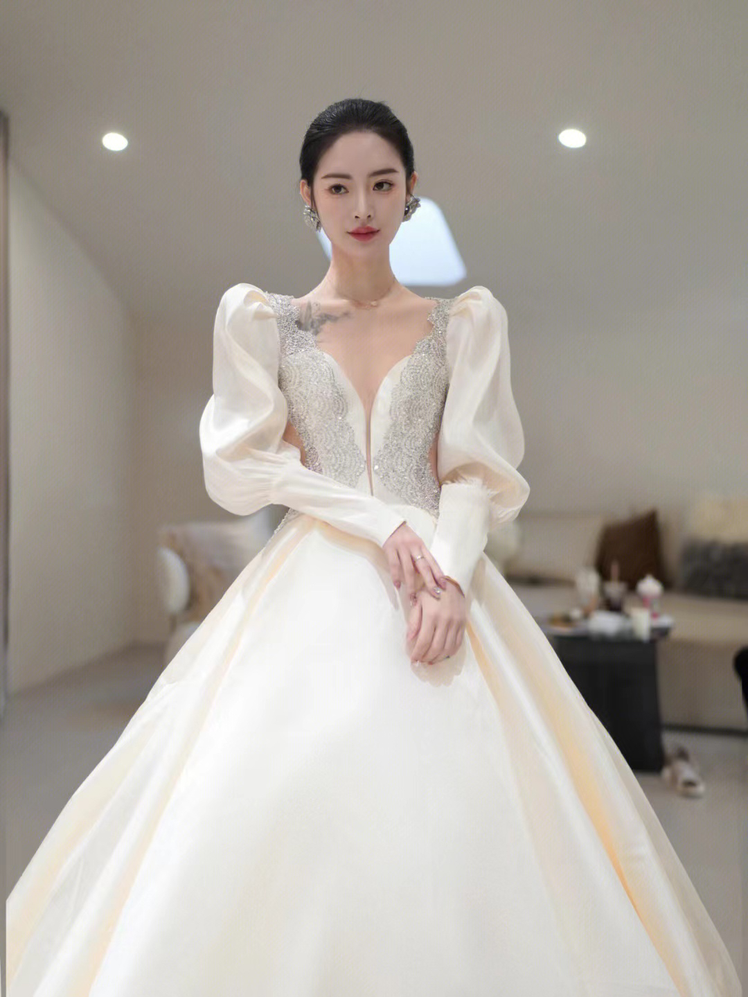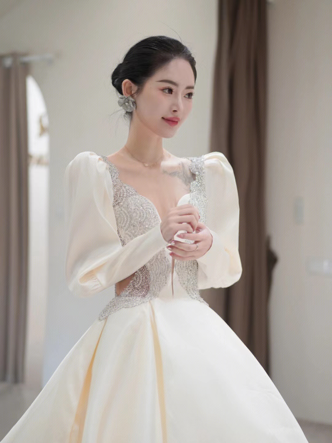 圣白|长袖重工缎面主纱