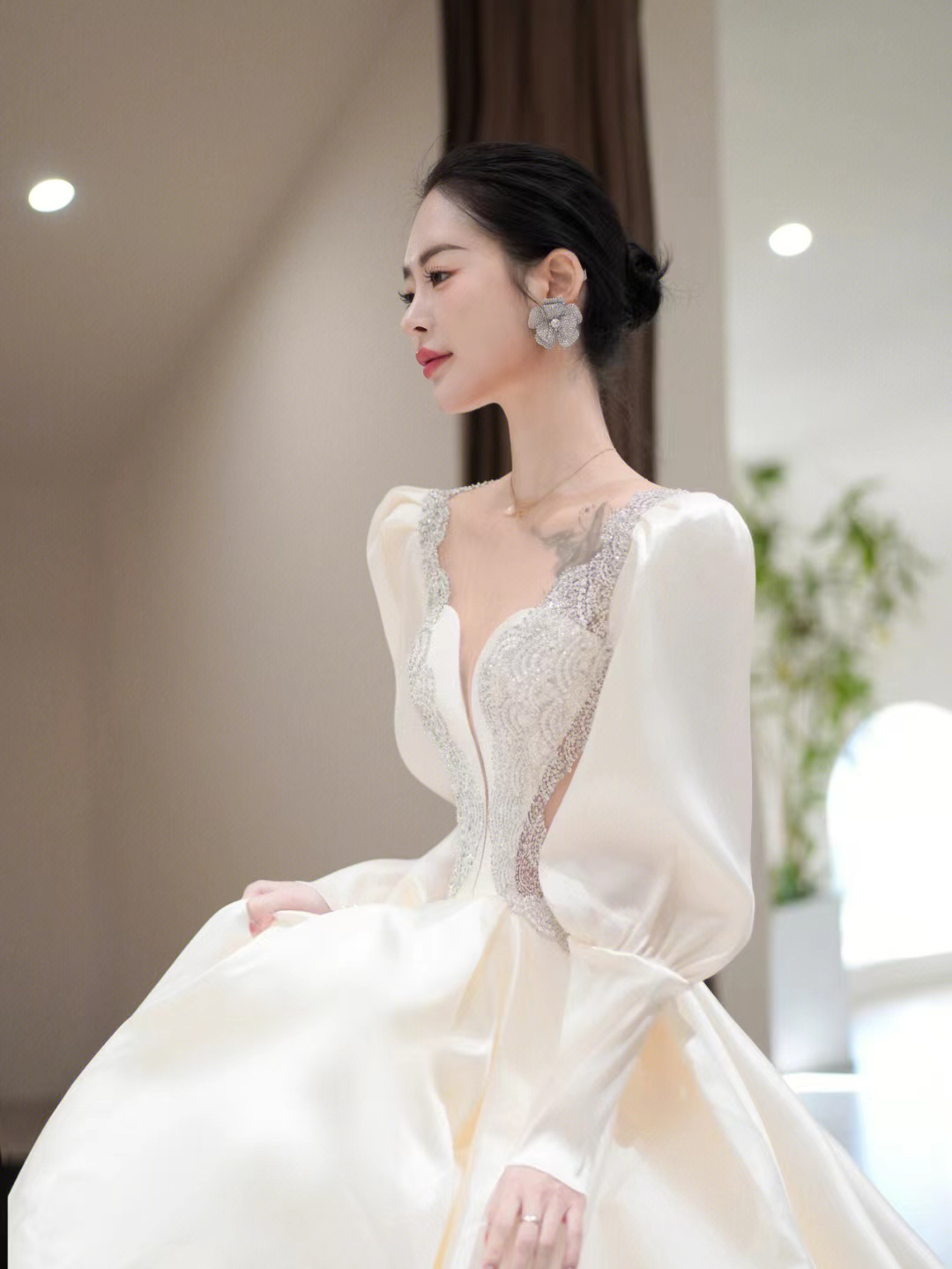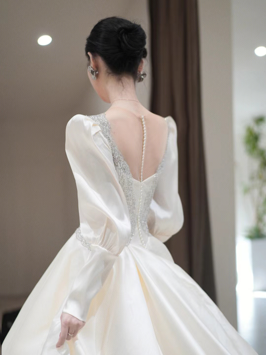 圣白|新款收腰缎面主纱