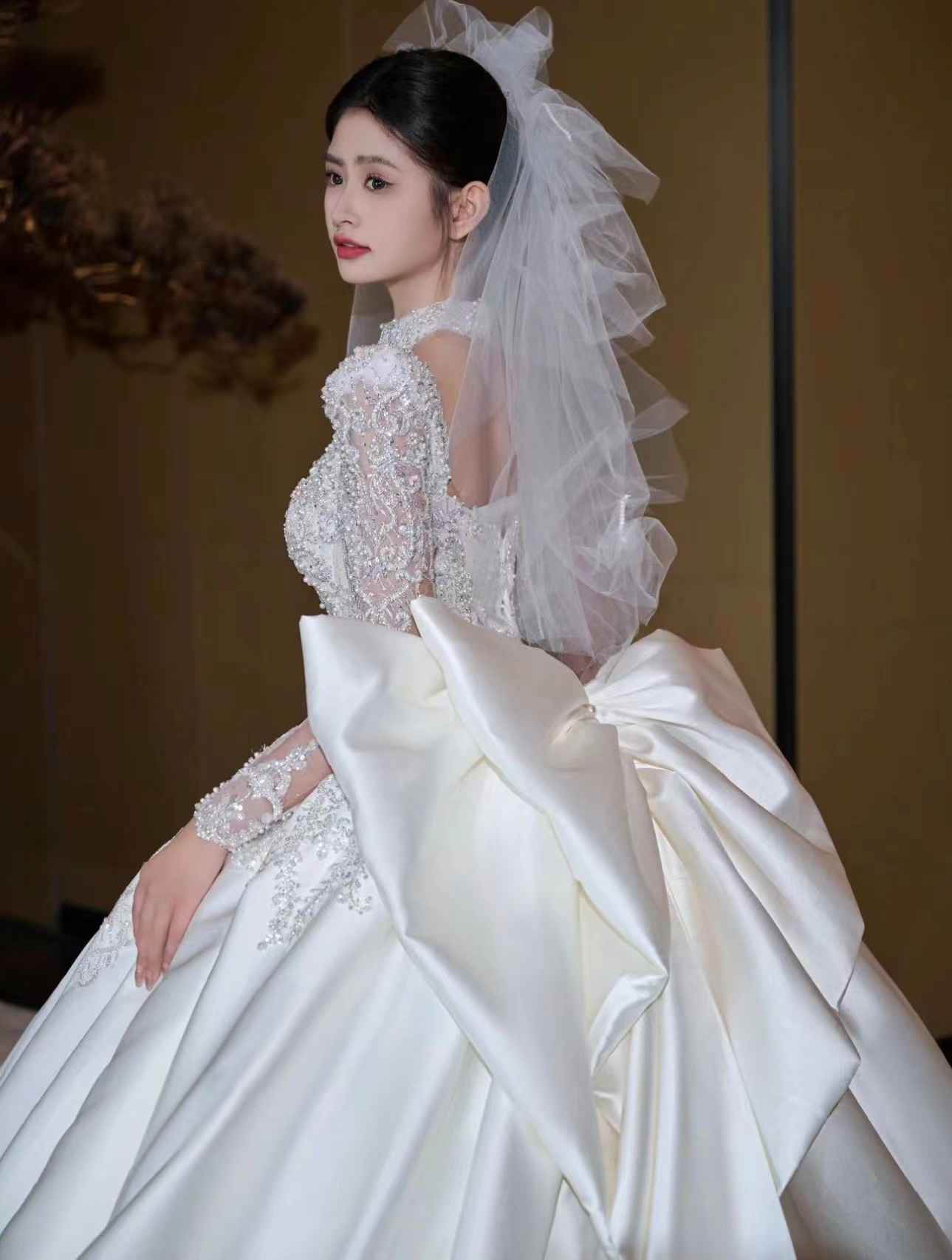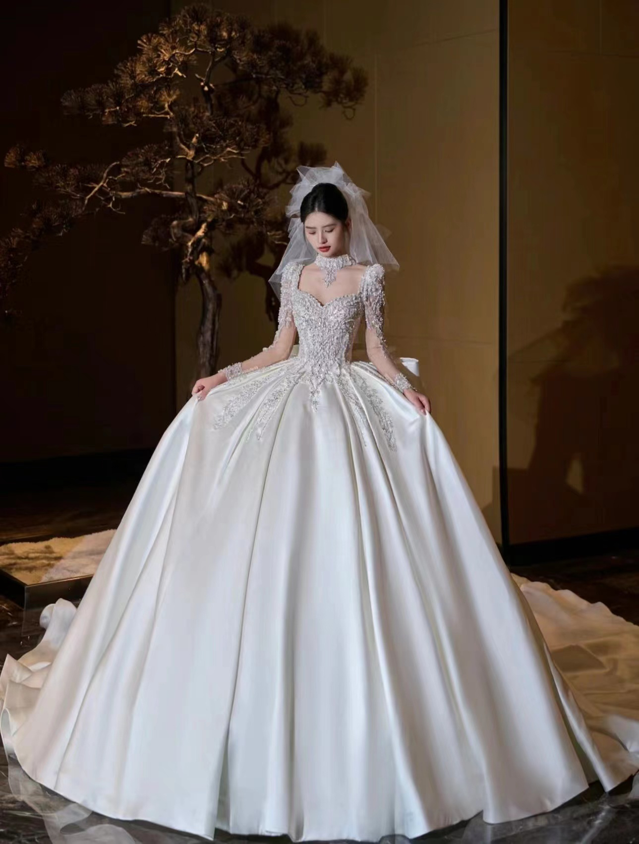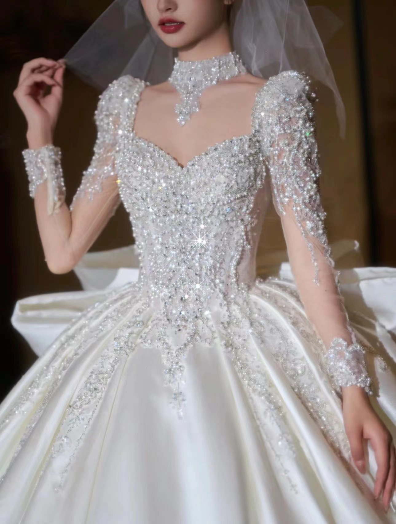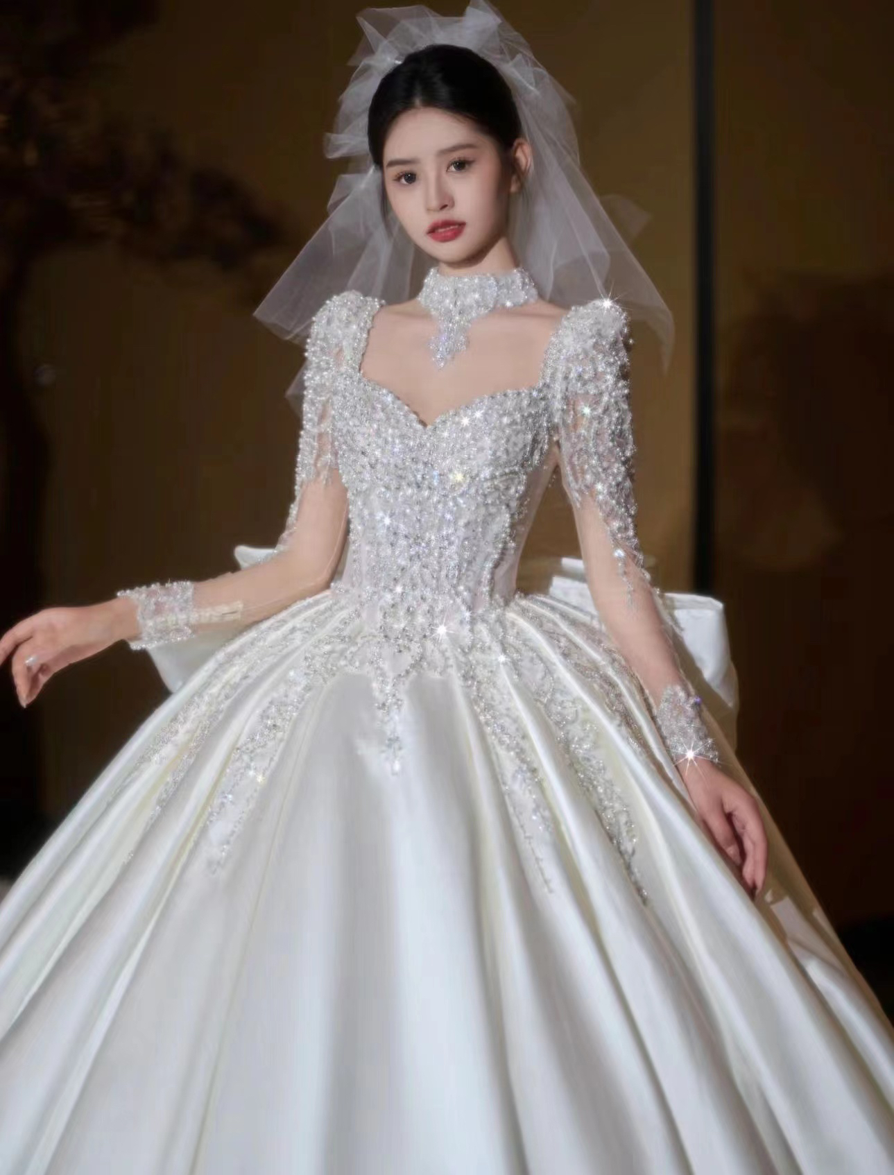 圣白|长袖重工缎面主纱