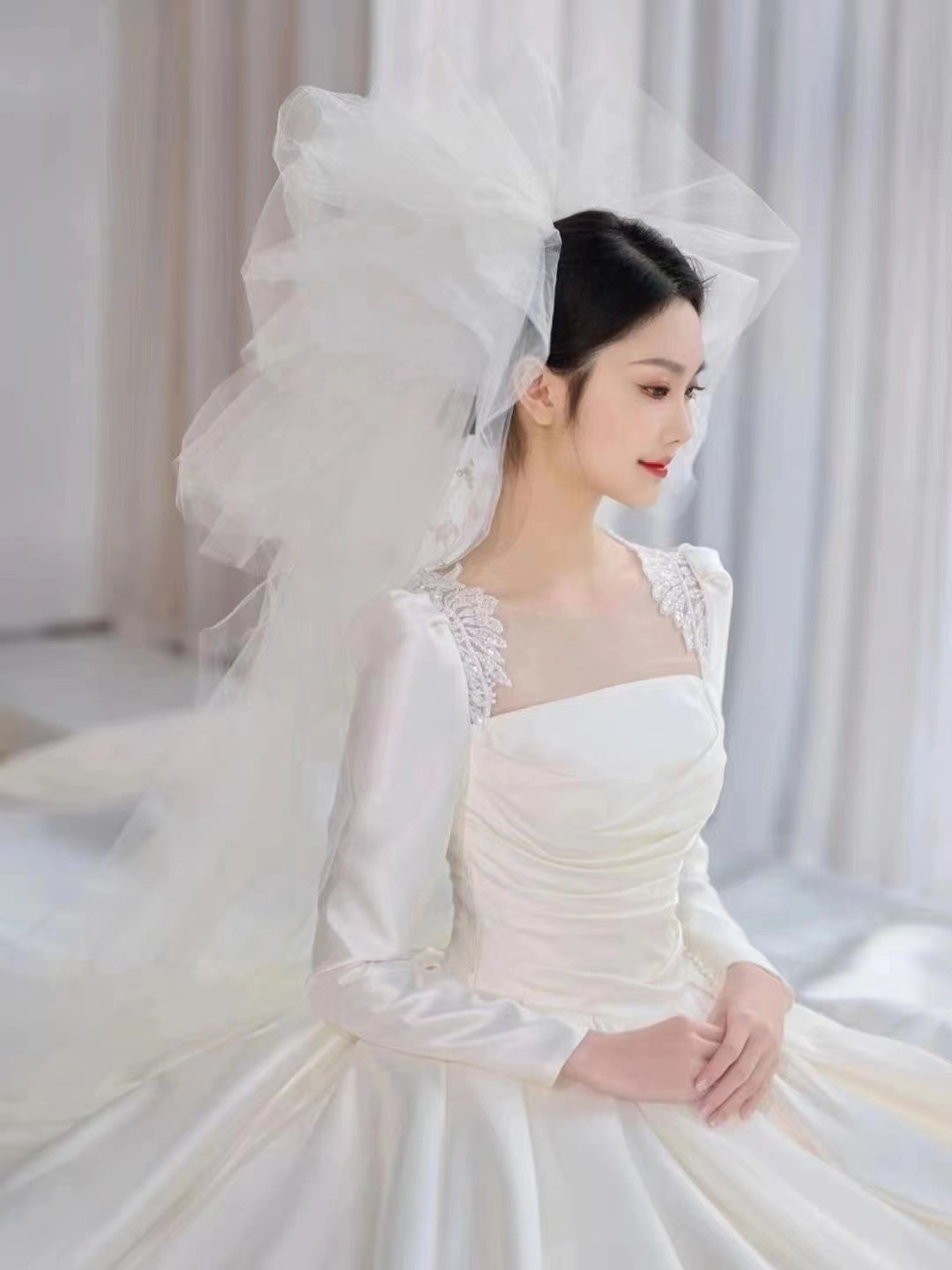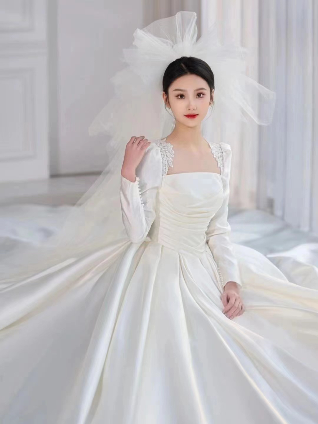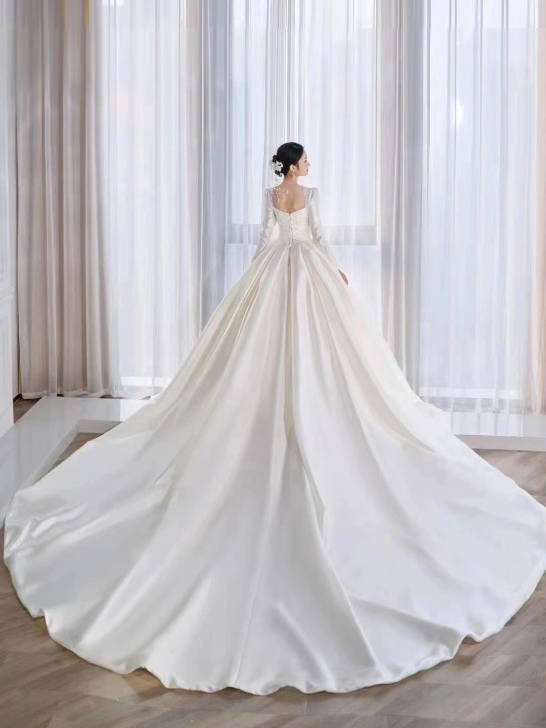 圣白|新款缎面大拖尾主纱