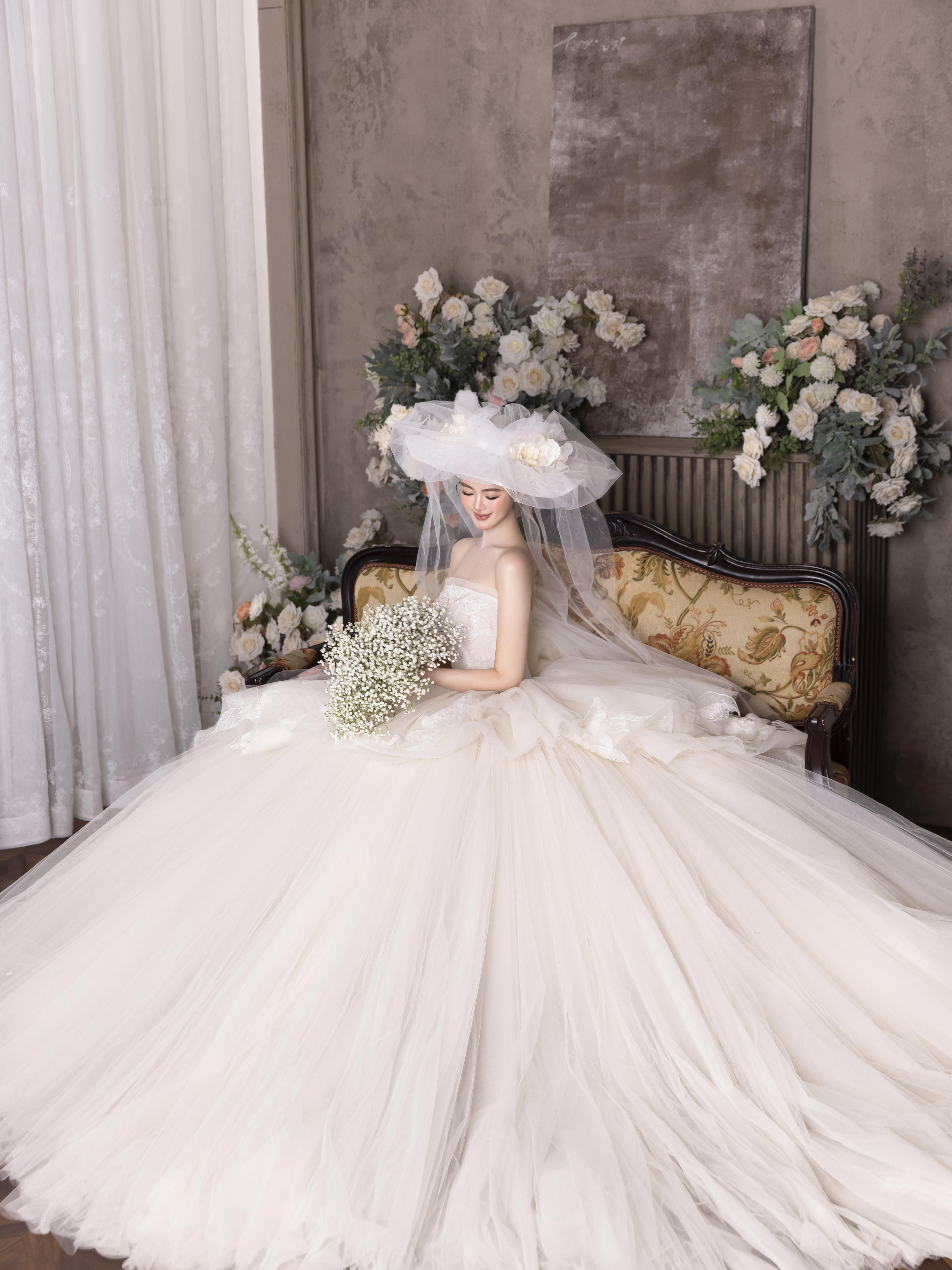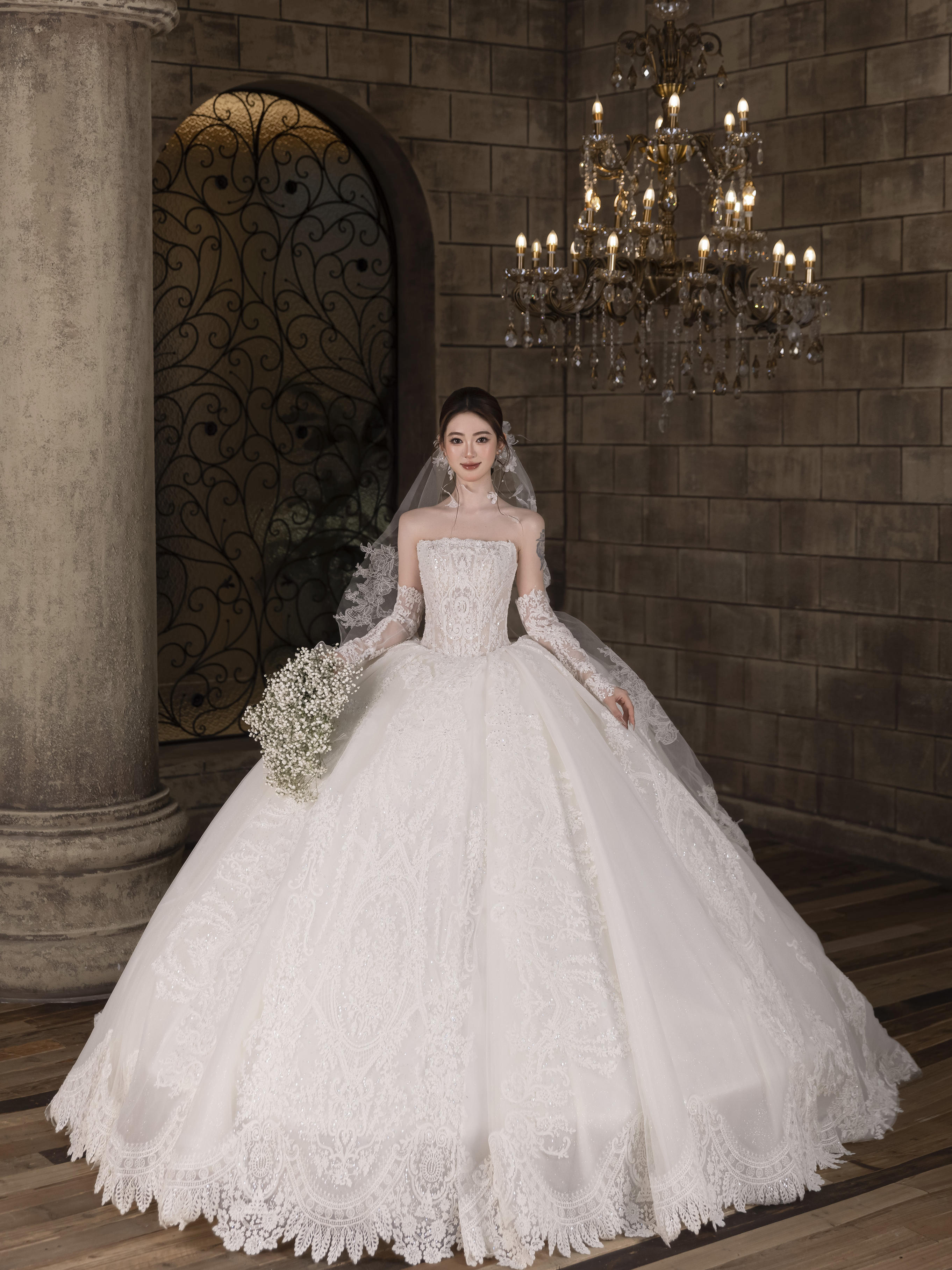 抹胸拖尾主纱