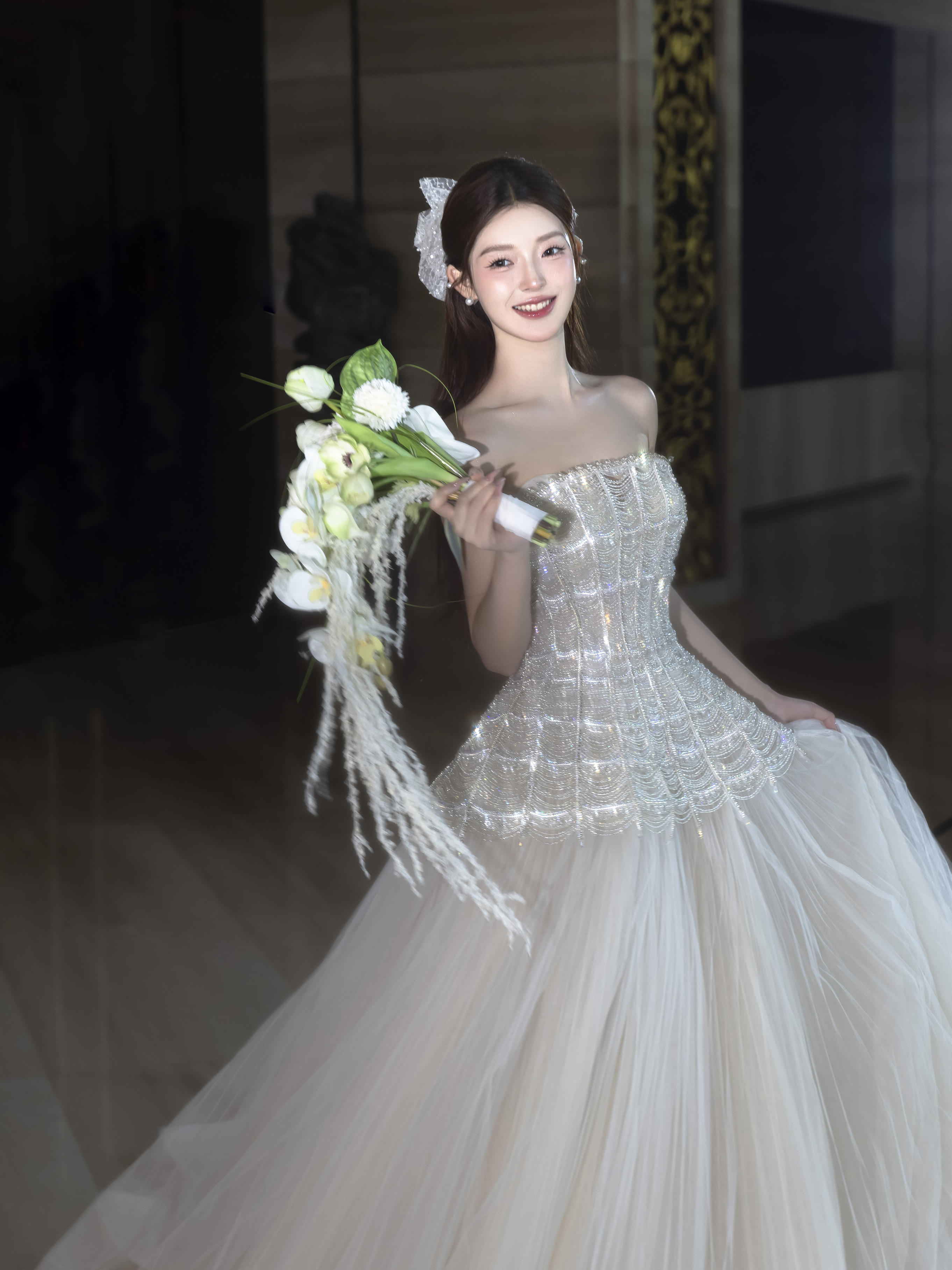 浪漫迷人的珠光粉礼服