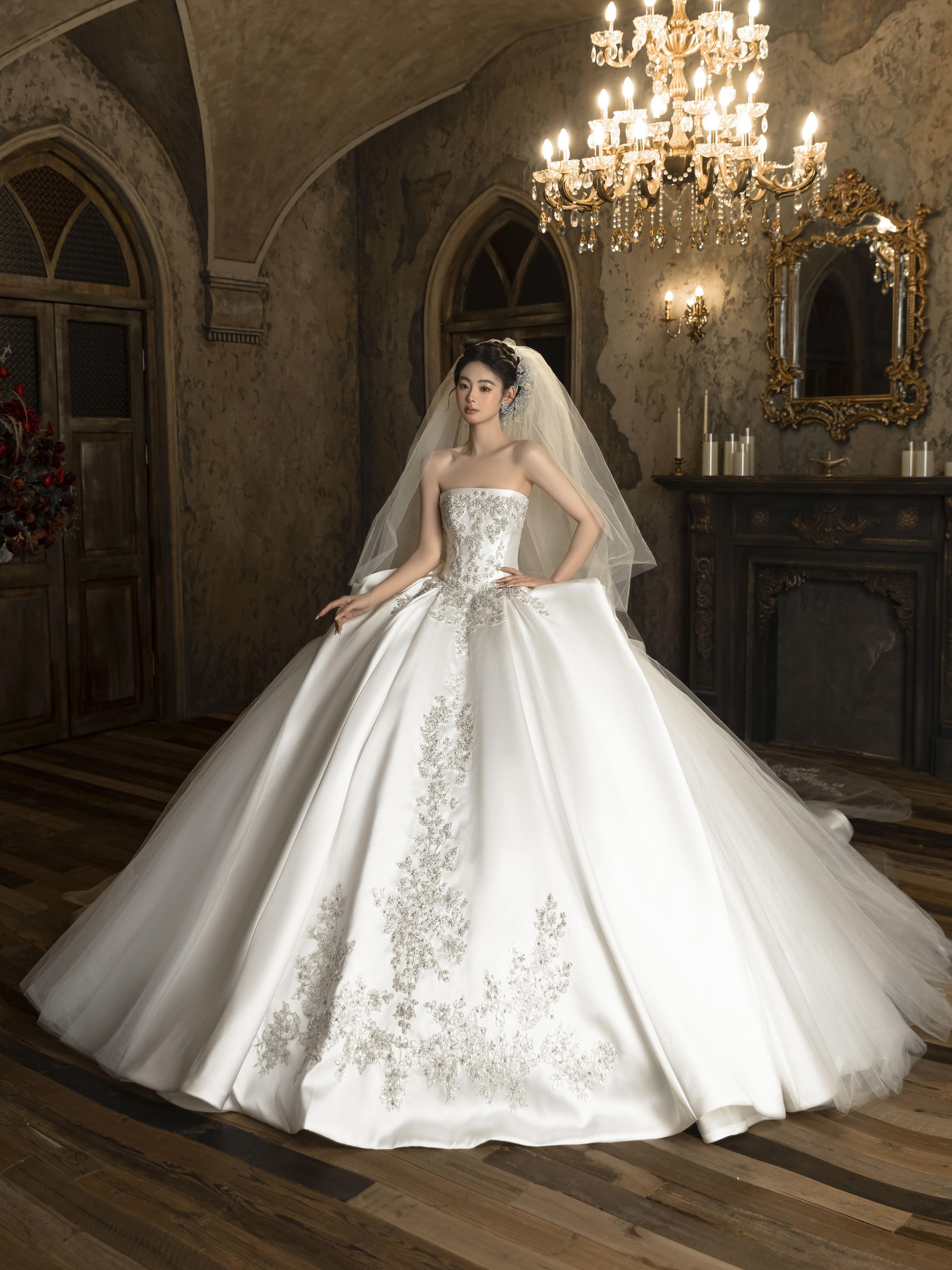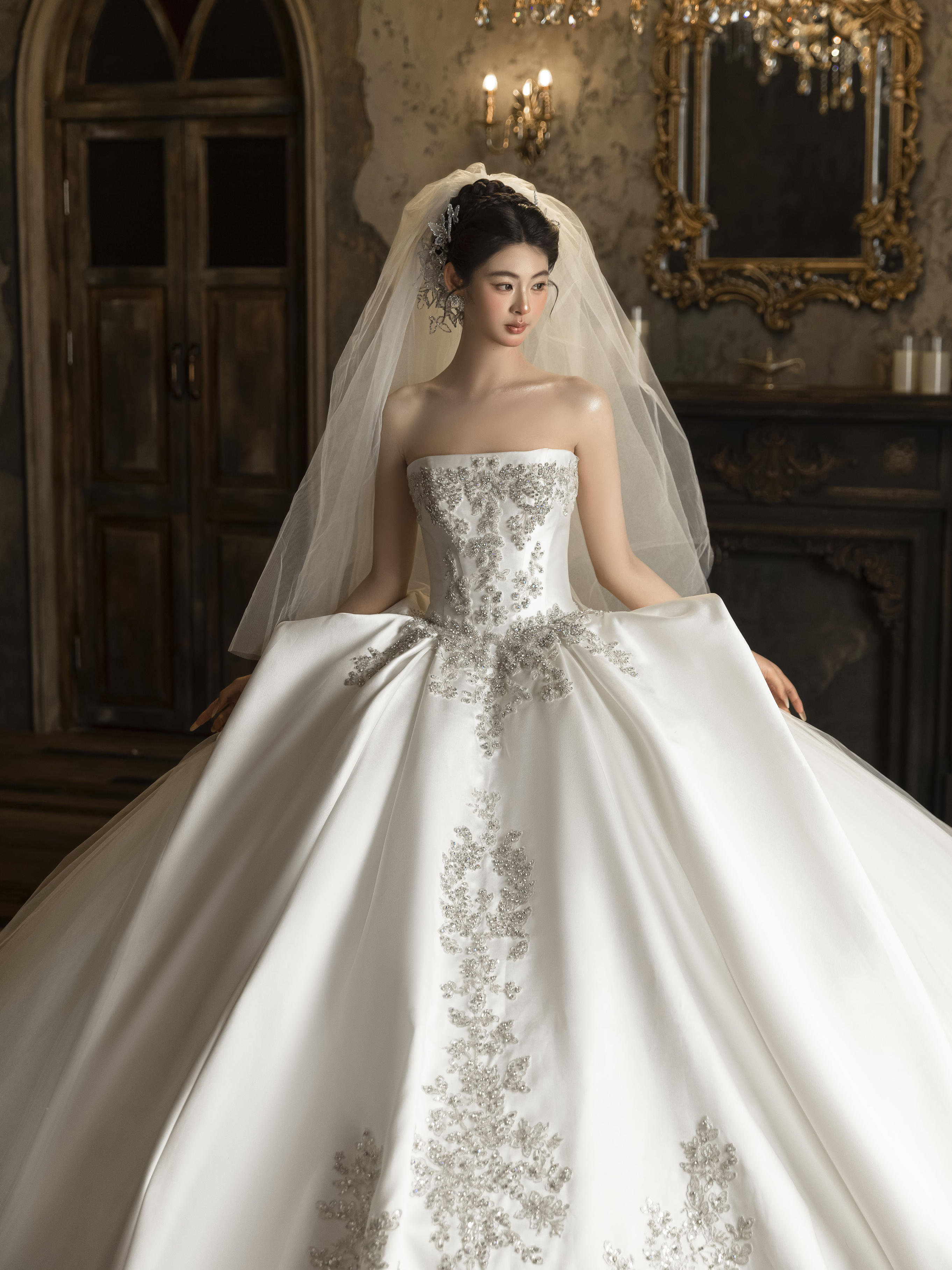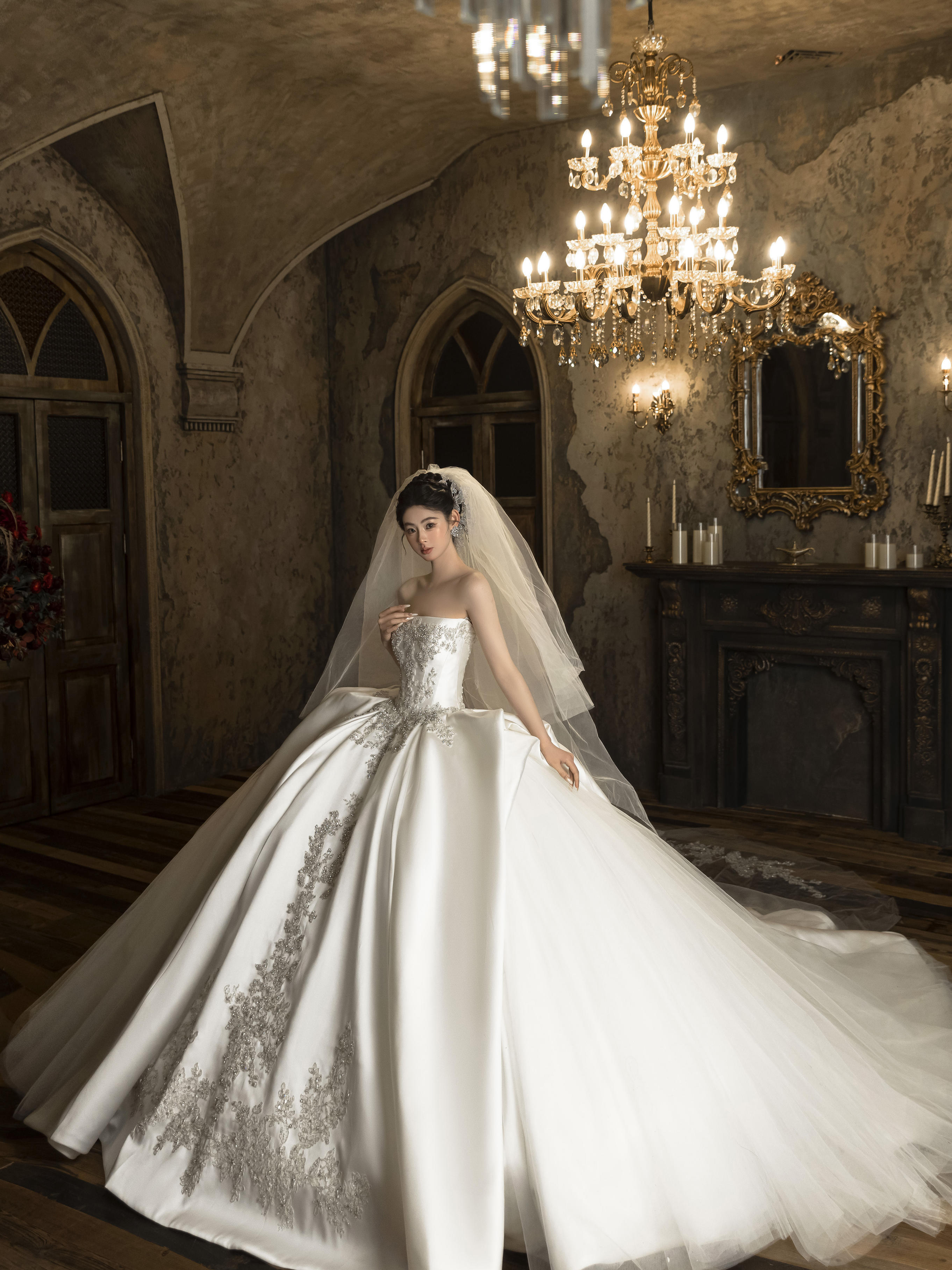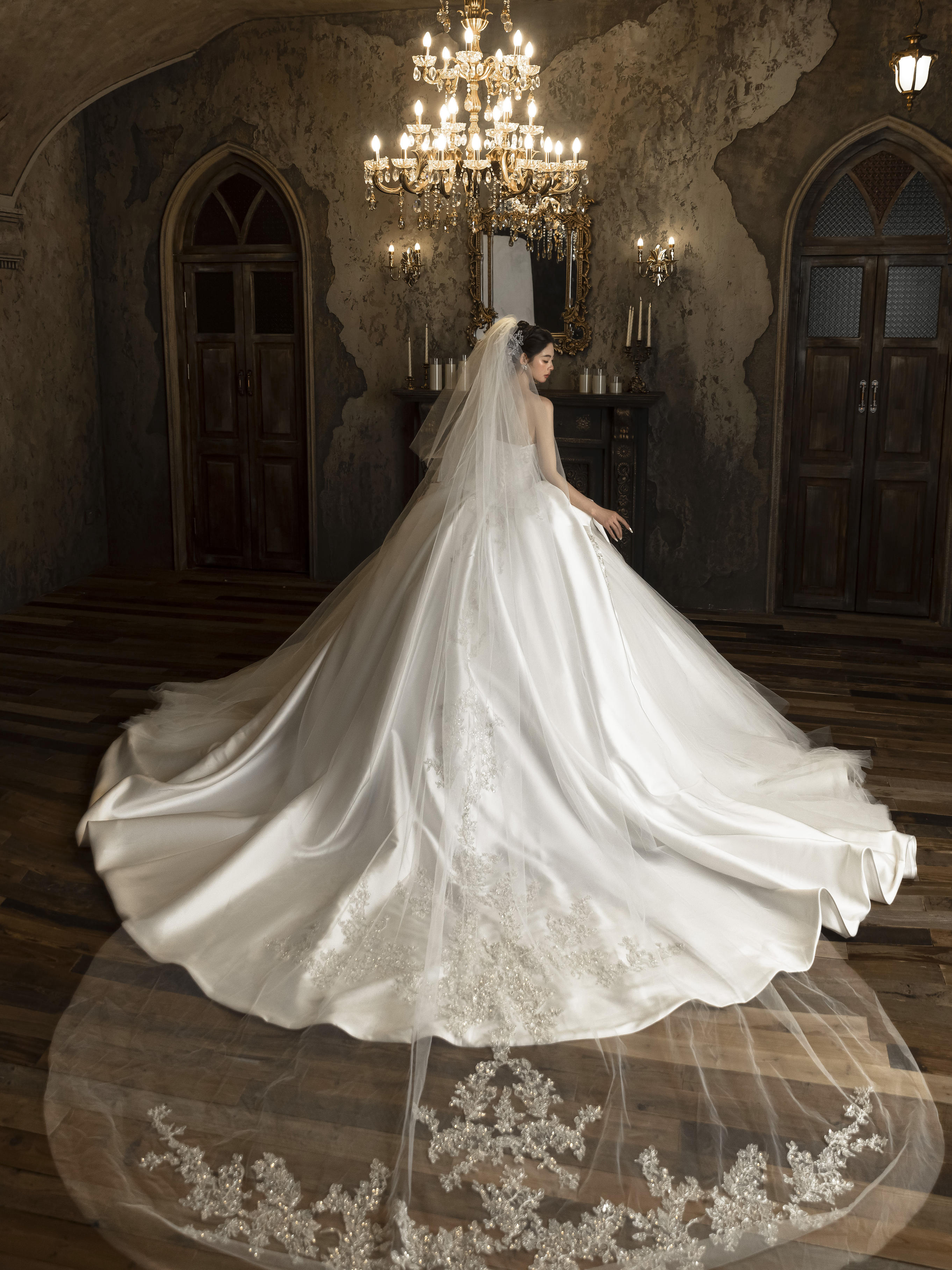 法式缎面蕾丝婚纱