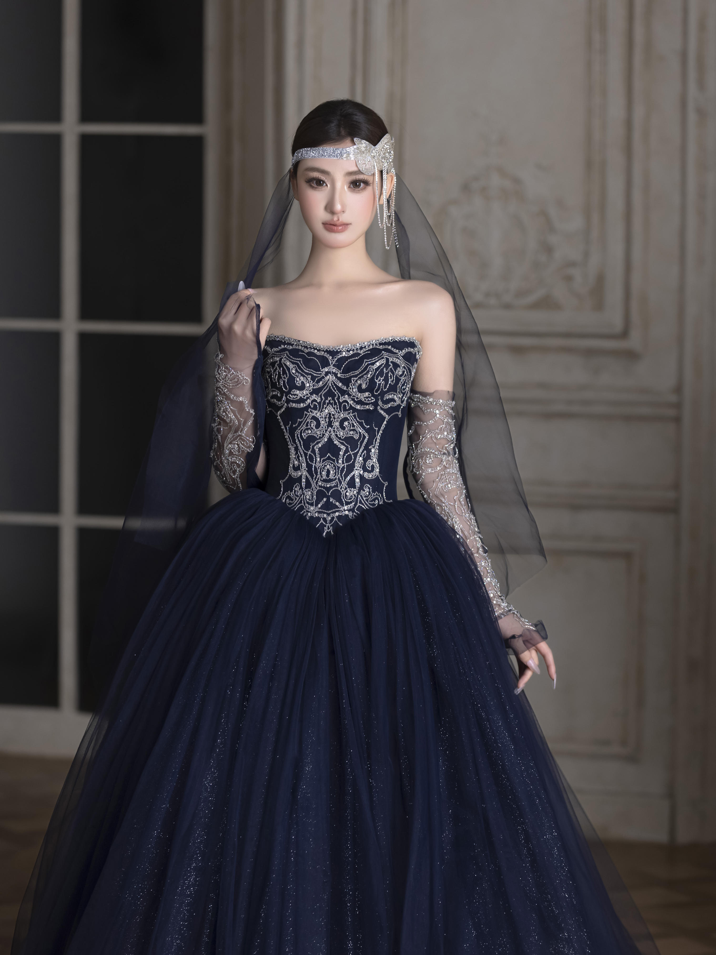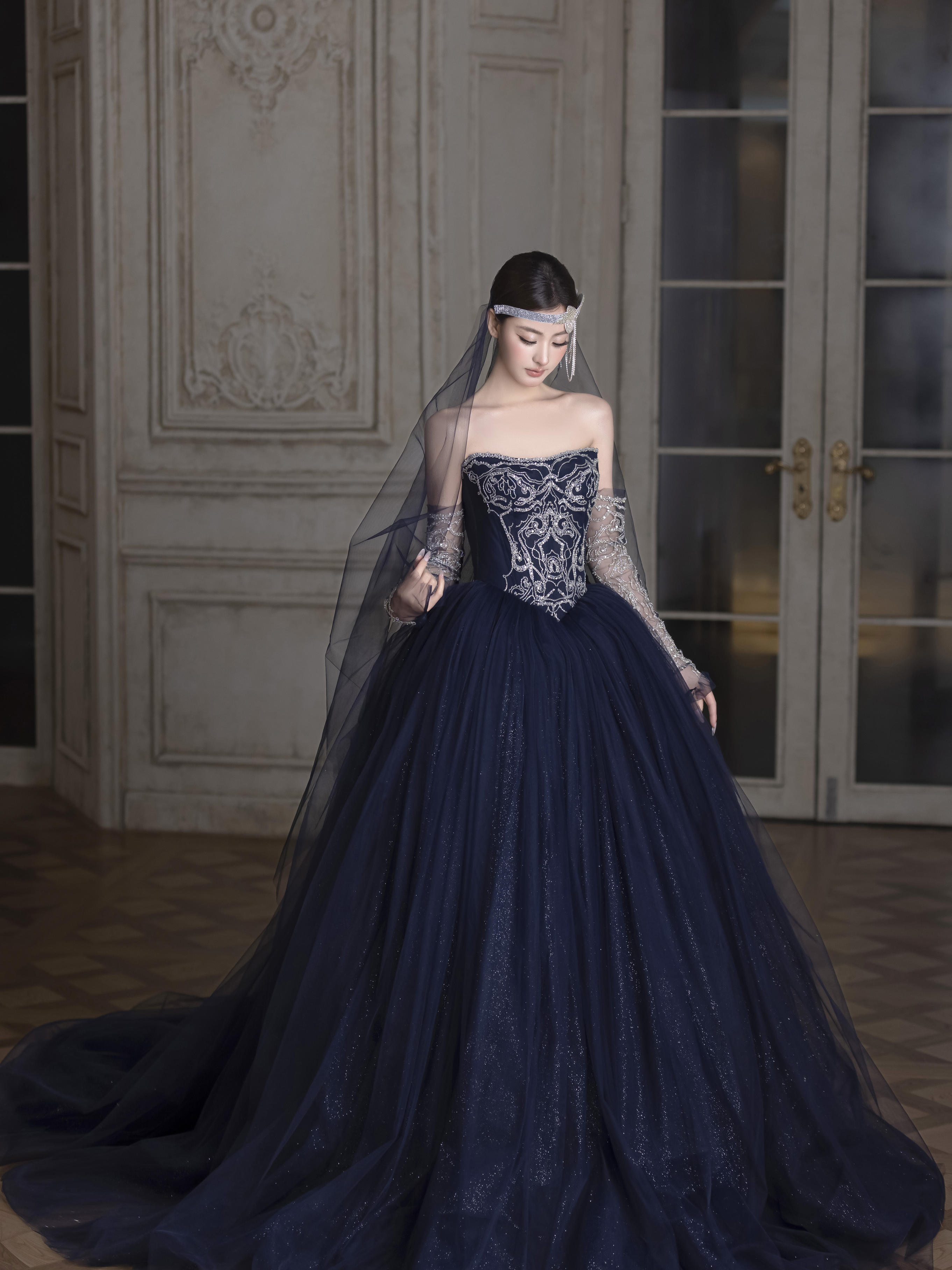 抹胸拖尾主纱
