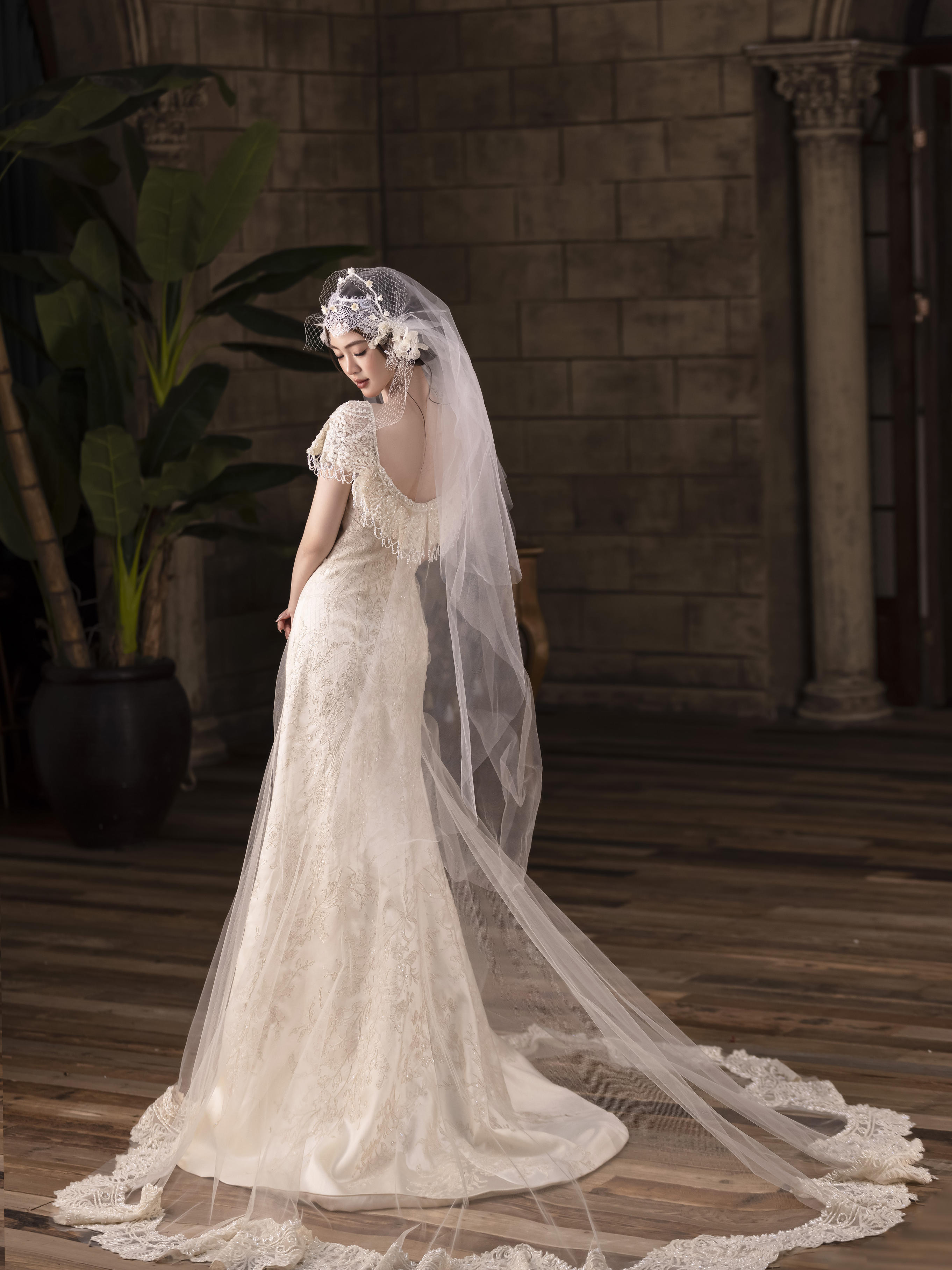 抹胸拖尾主纱