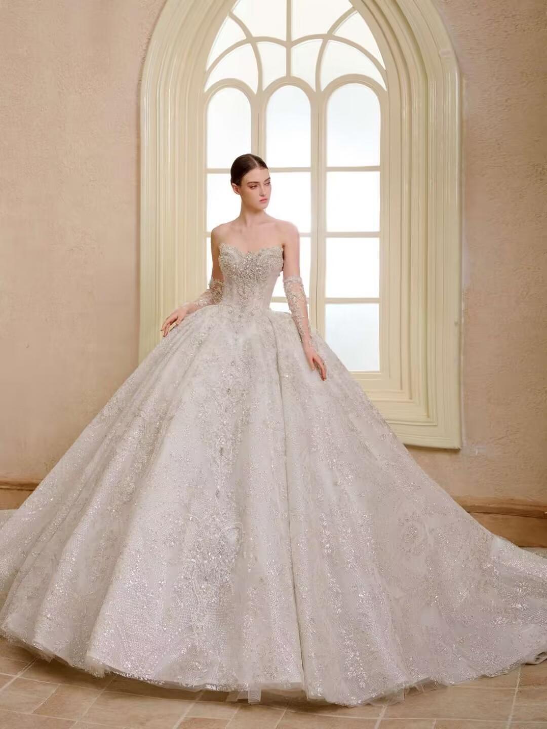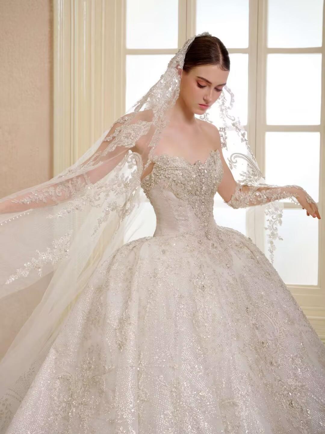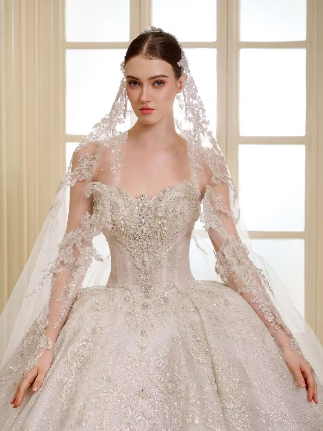 缎面与碎钻交织,重工奢华主纱