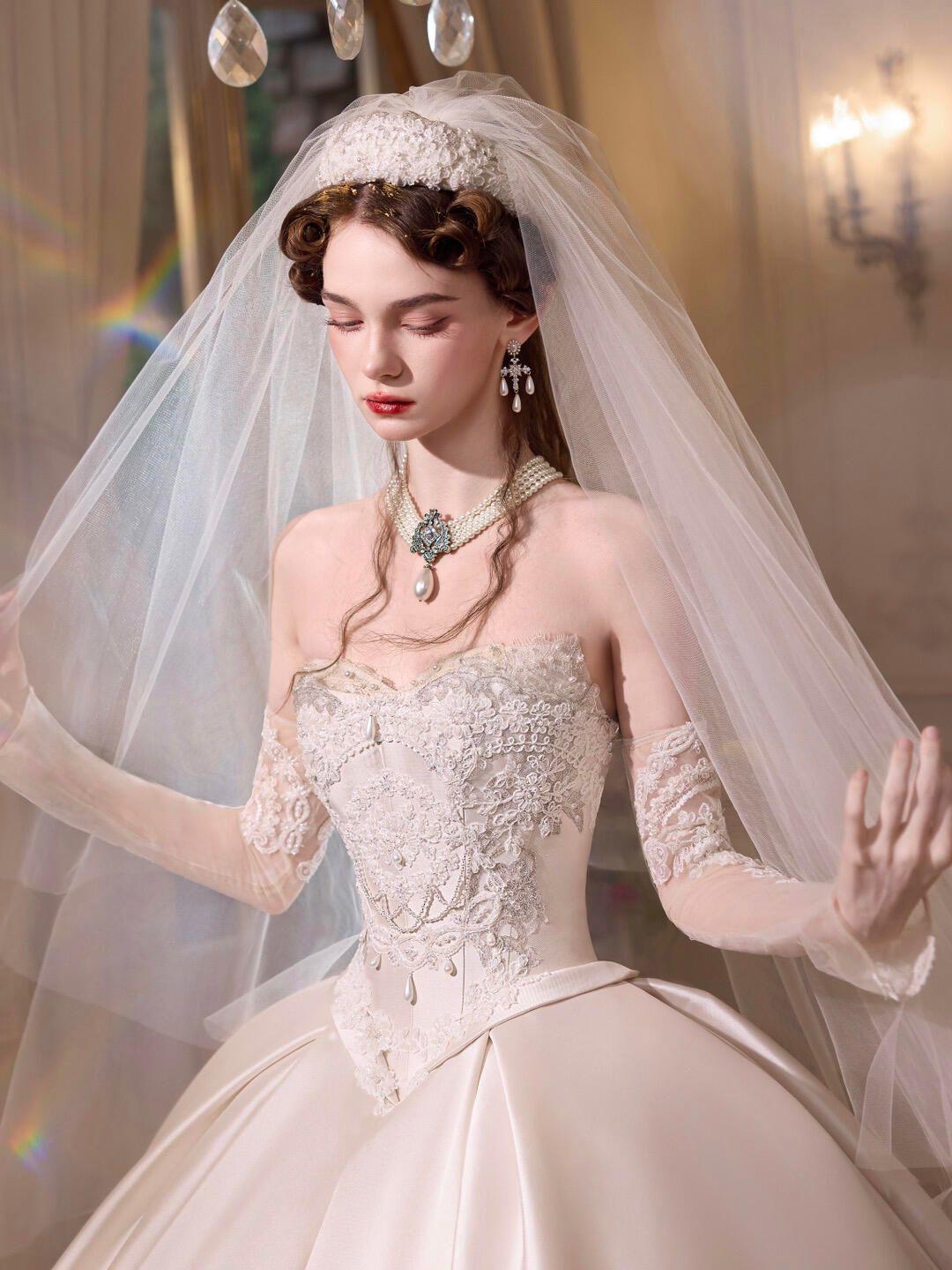 【薇薇安】蝴蝶结缎面主纱