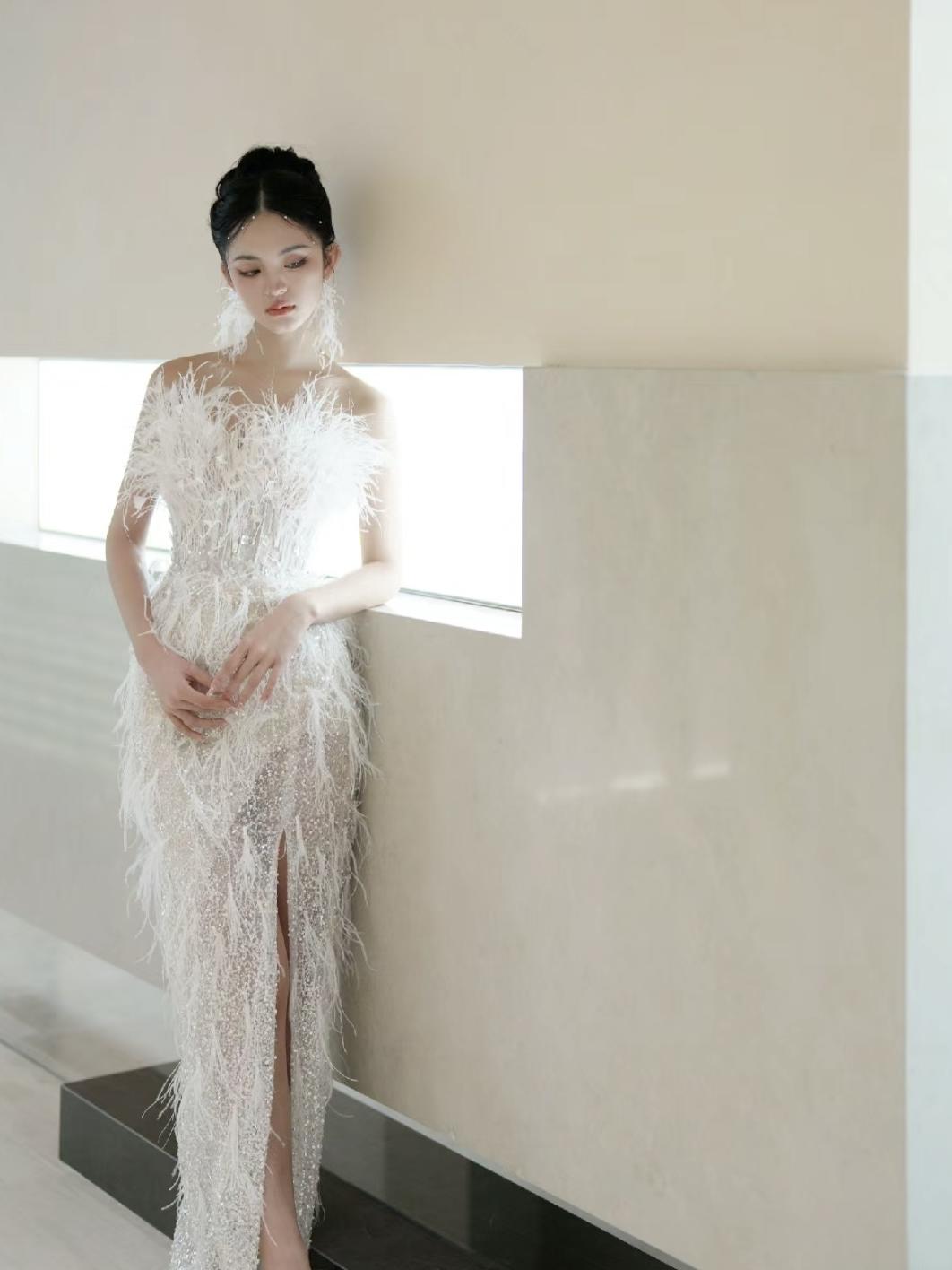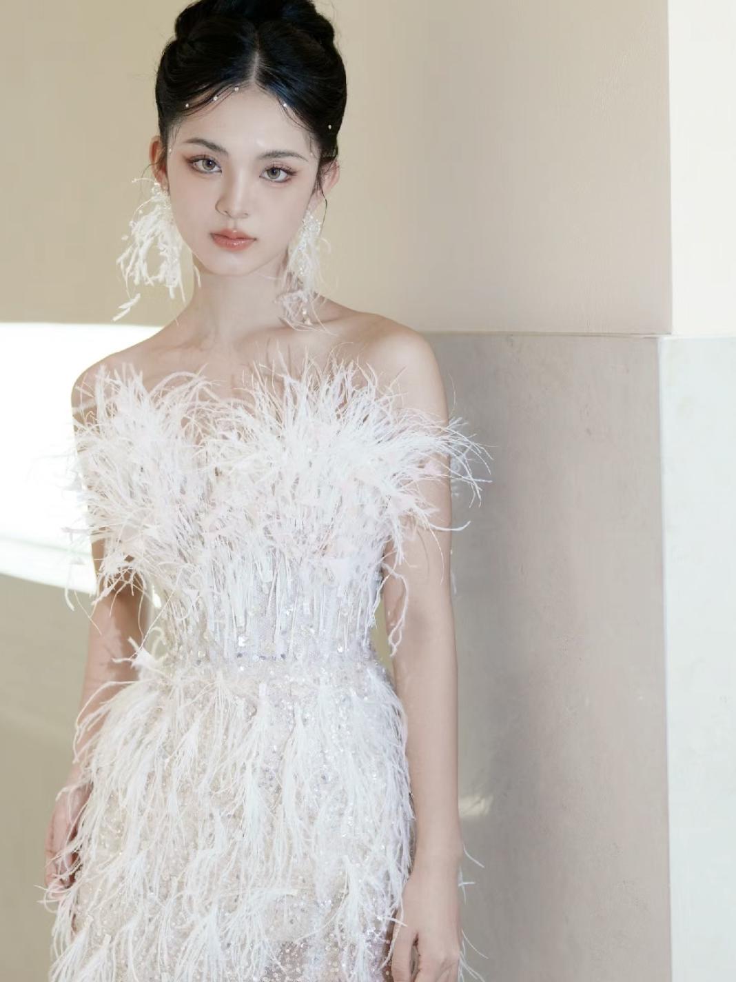 【WM】清冷感轻透羽毛礼服