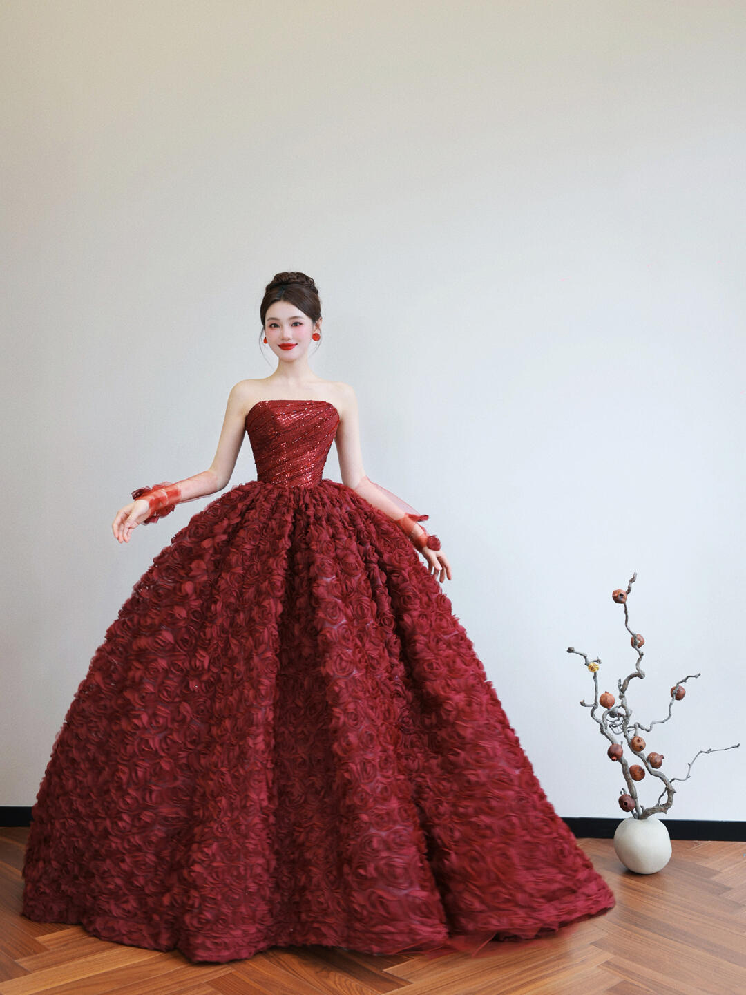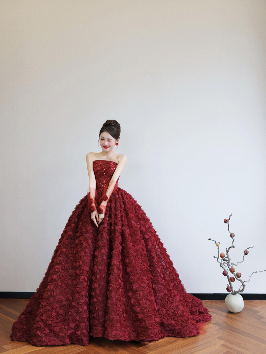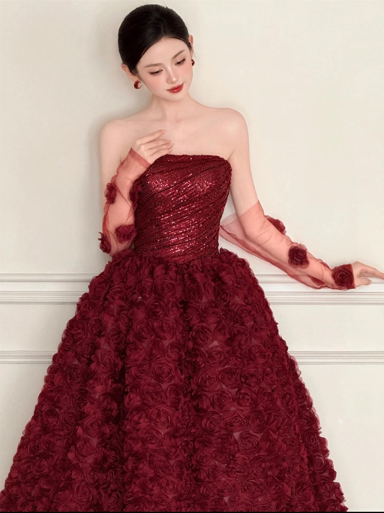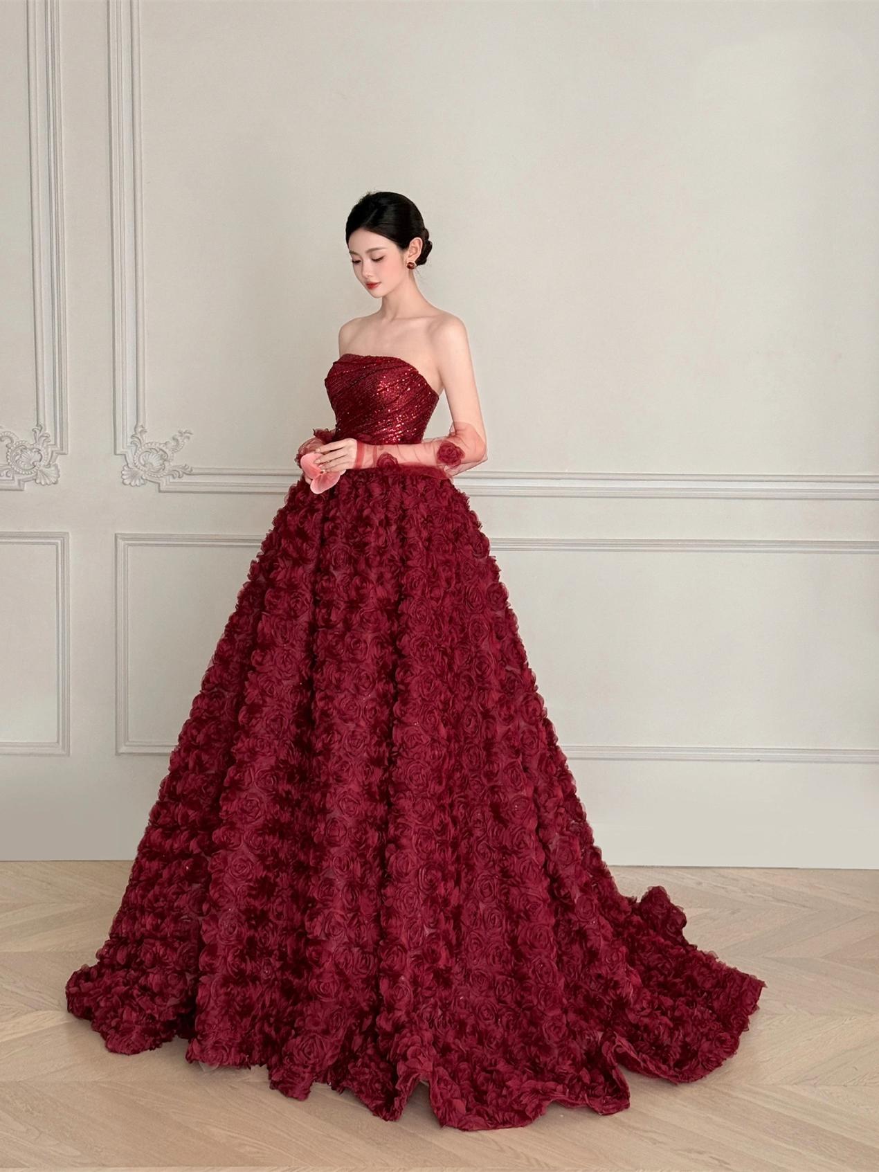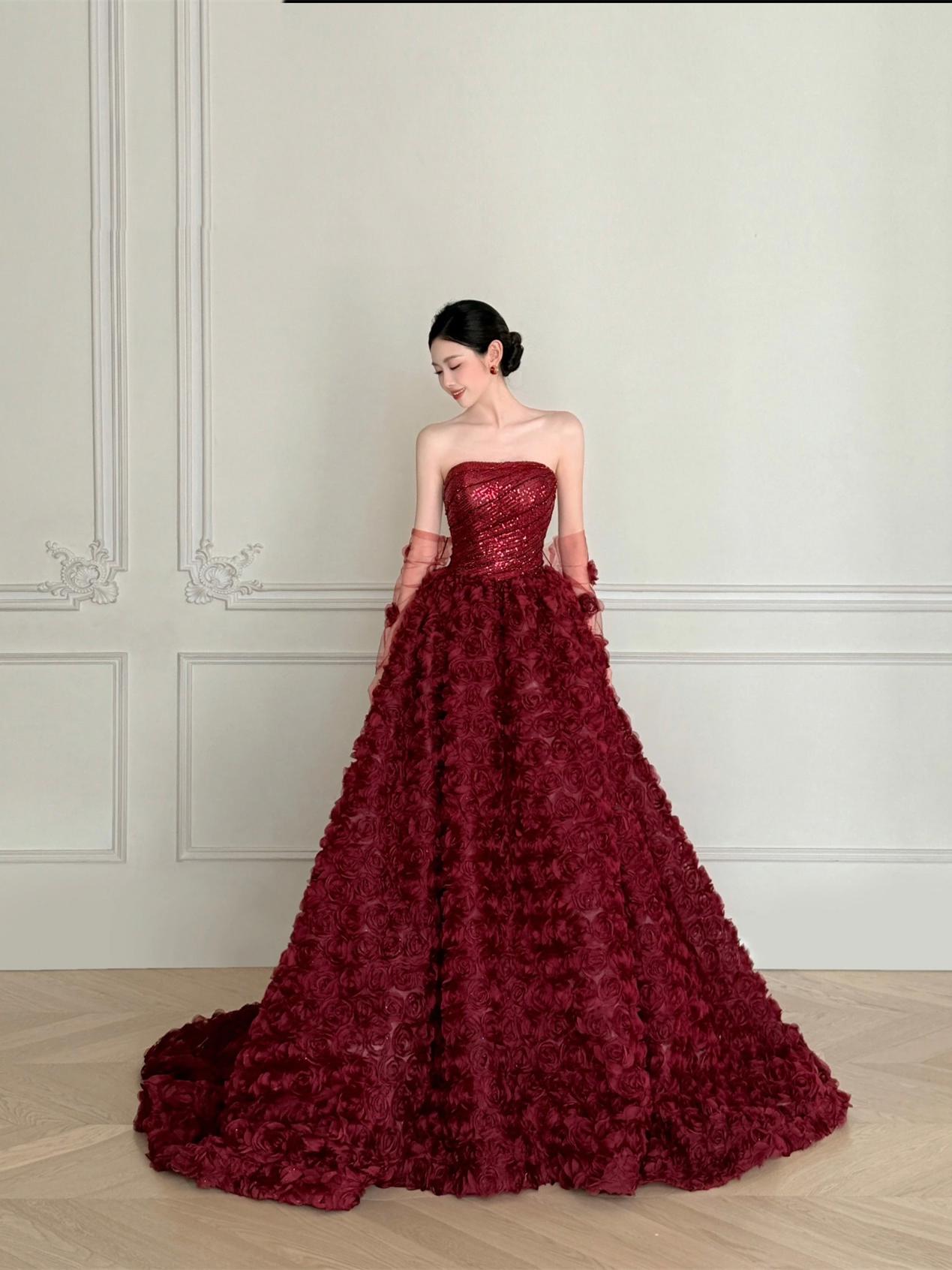 【WM】抹胸立体玫瑰仪式感礼服