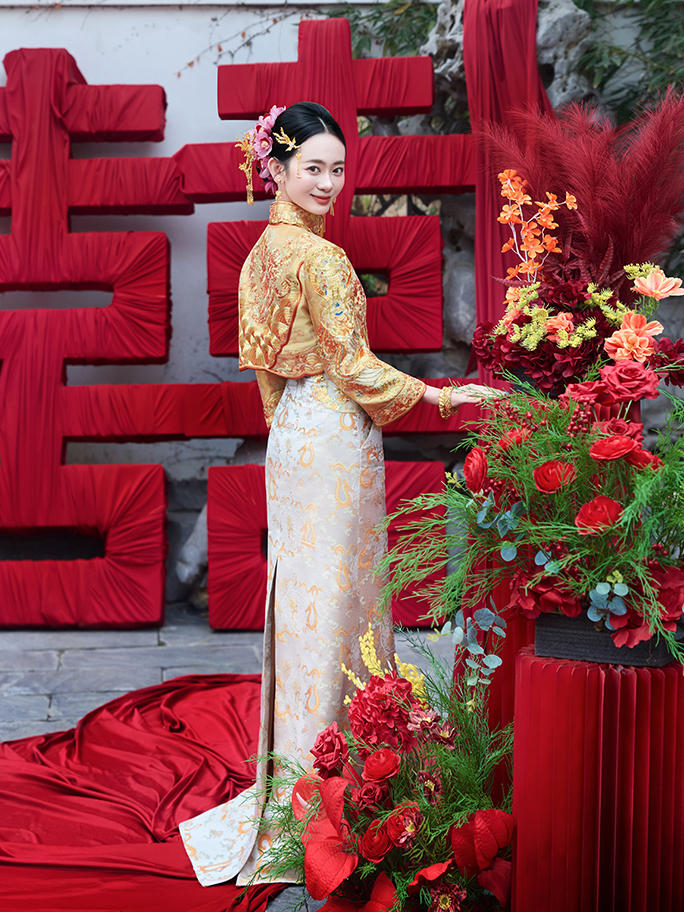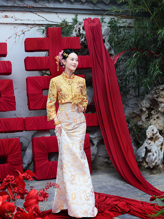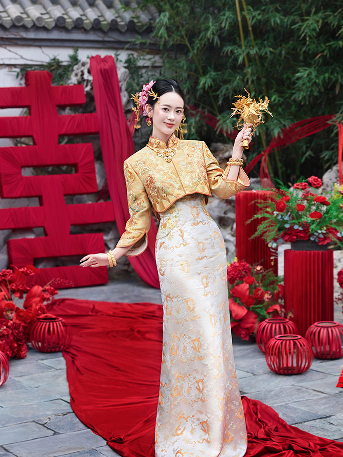 天玺~流光溢彩玉子色旗袍太出