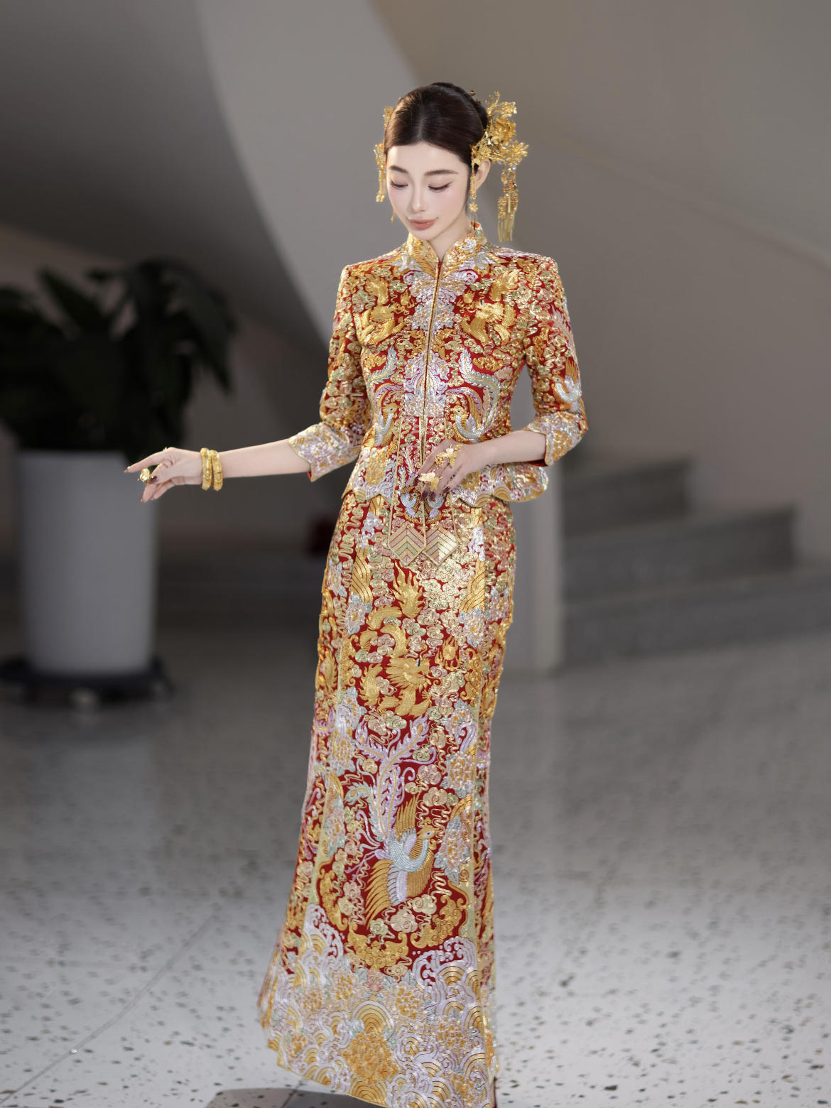 天玺~流光溢彩玉子色旗袍太出