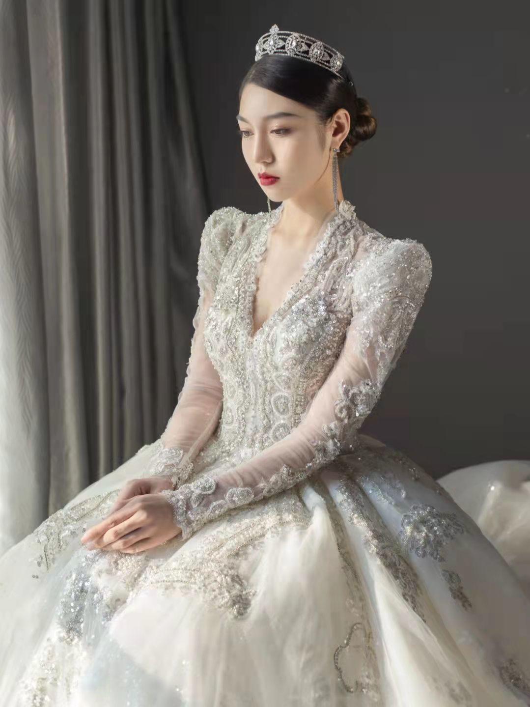 【范·婚纱】高贵女王范拖尾婚纱