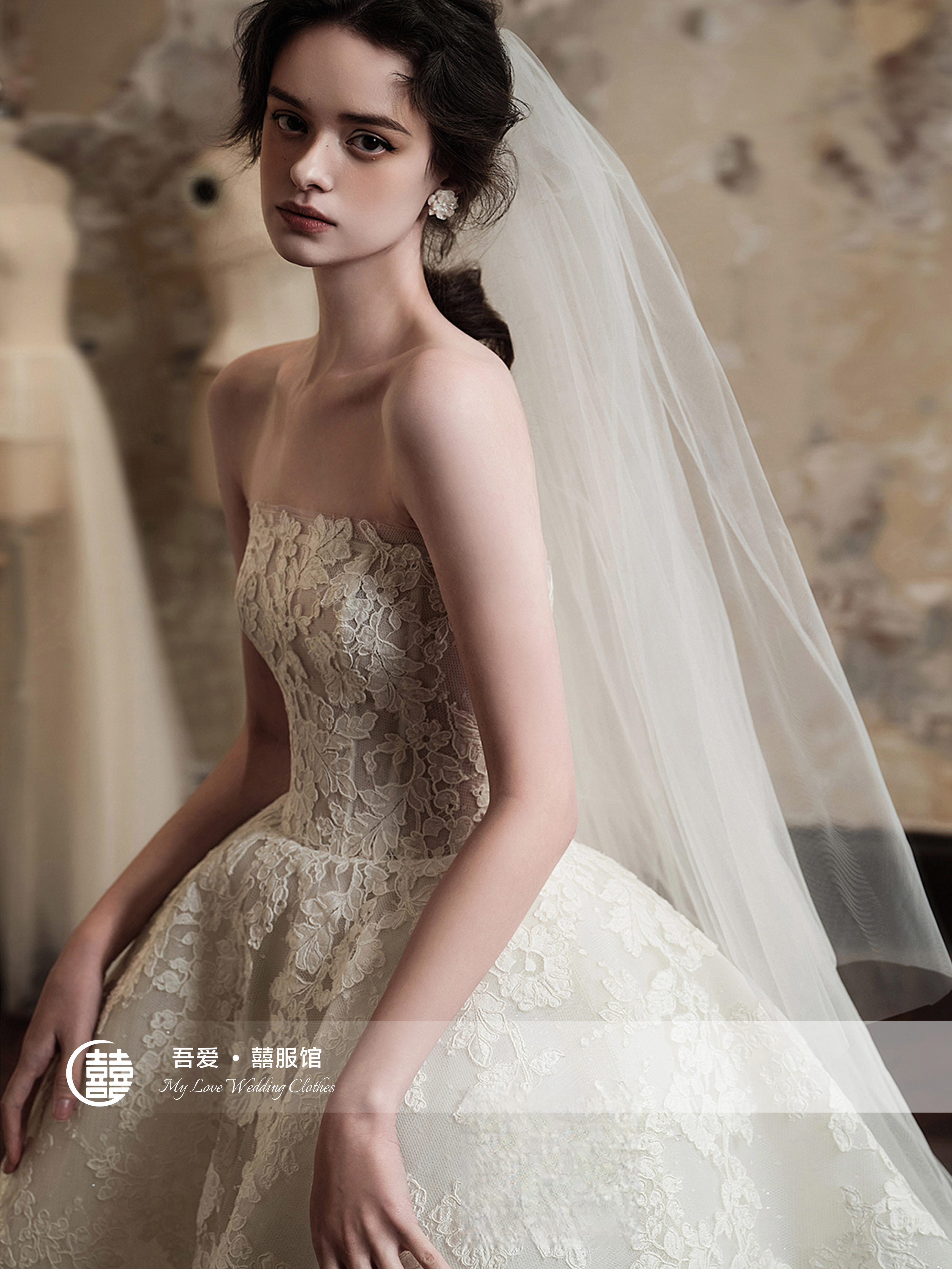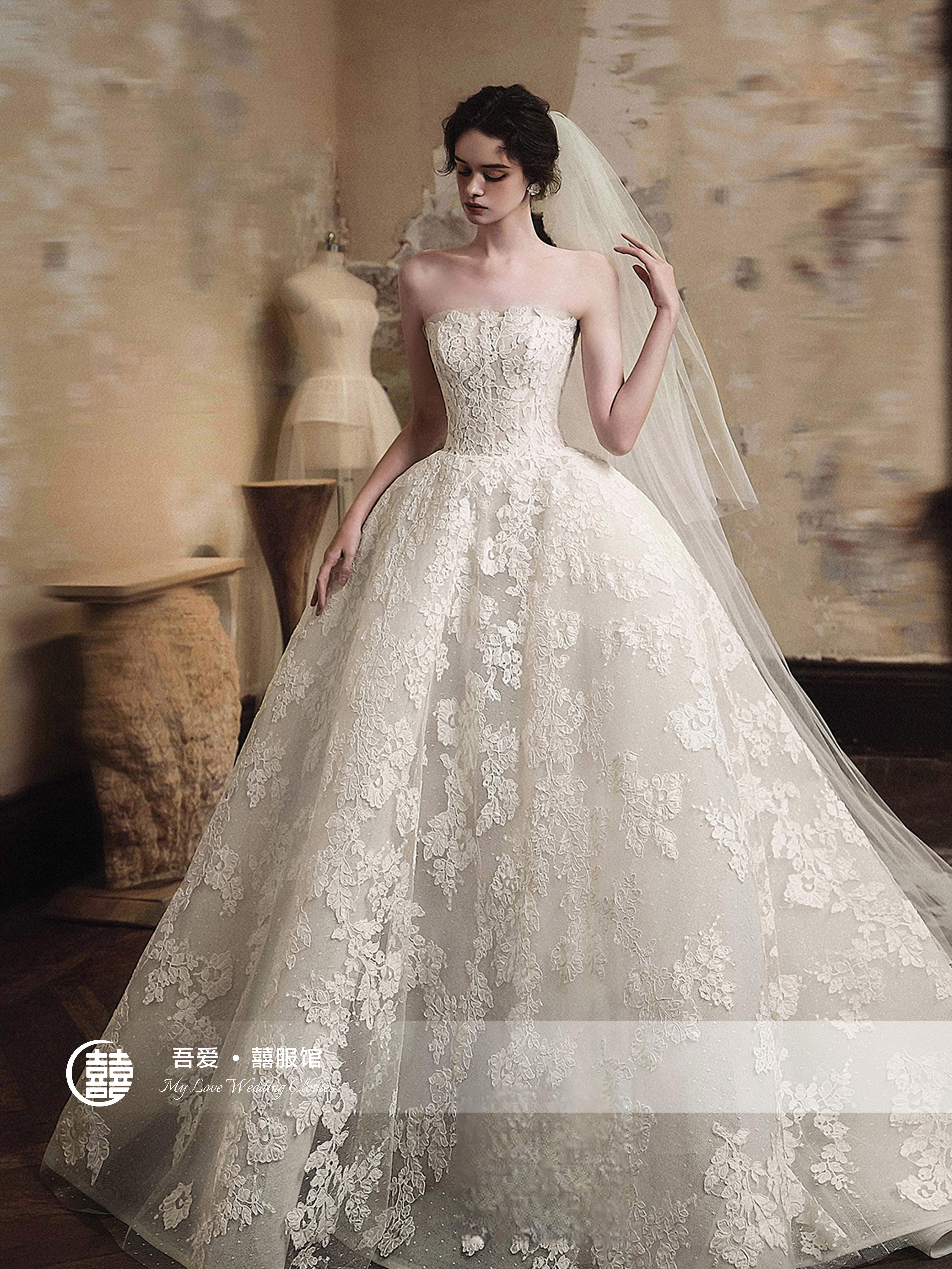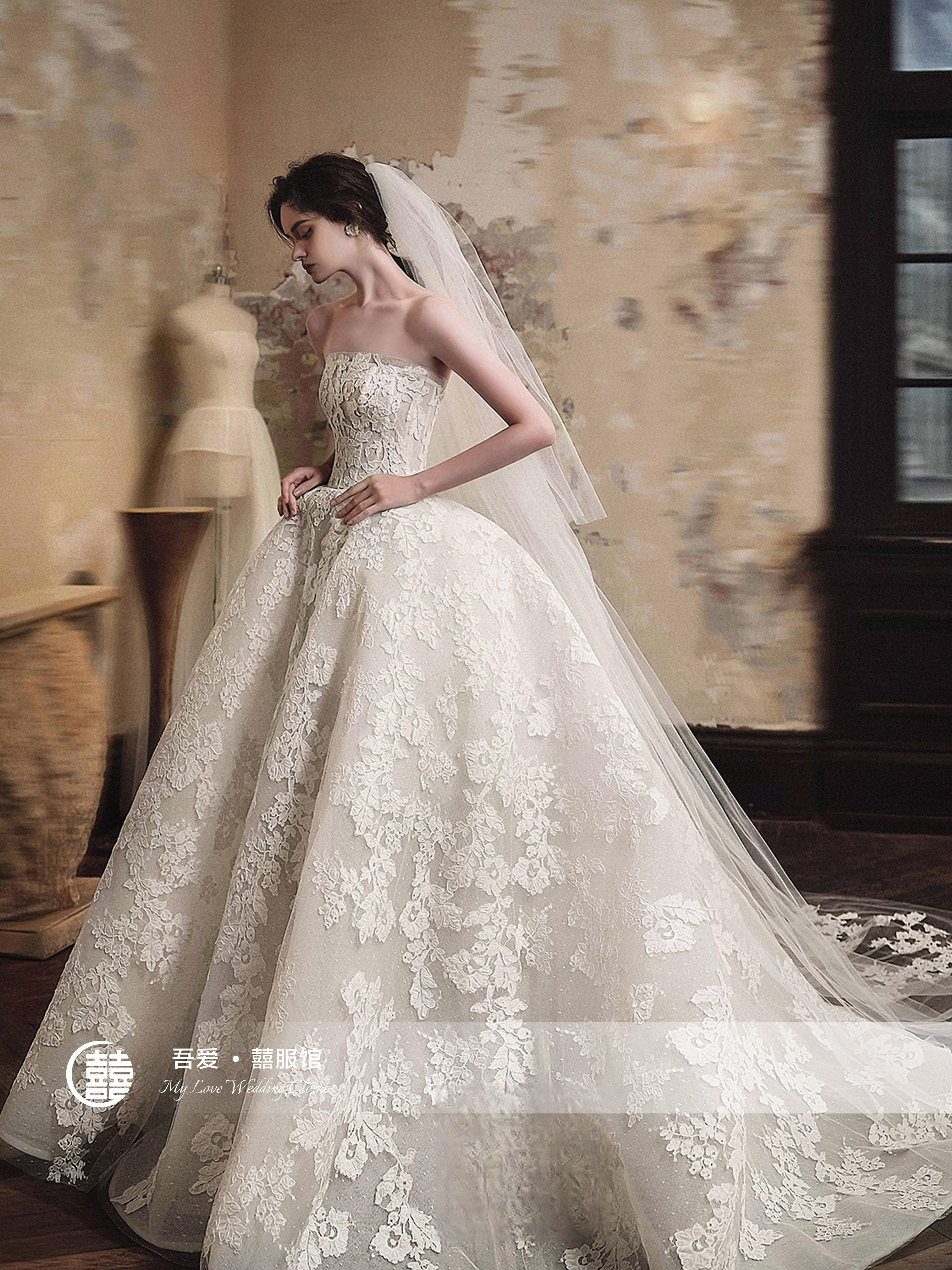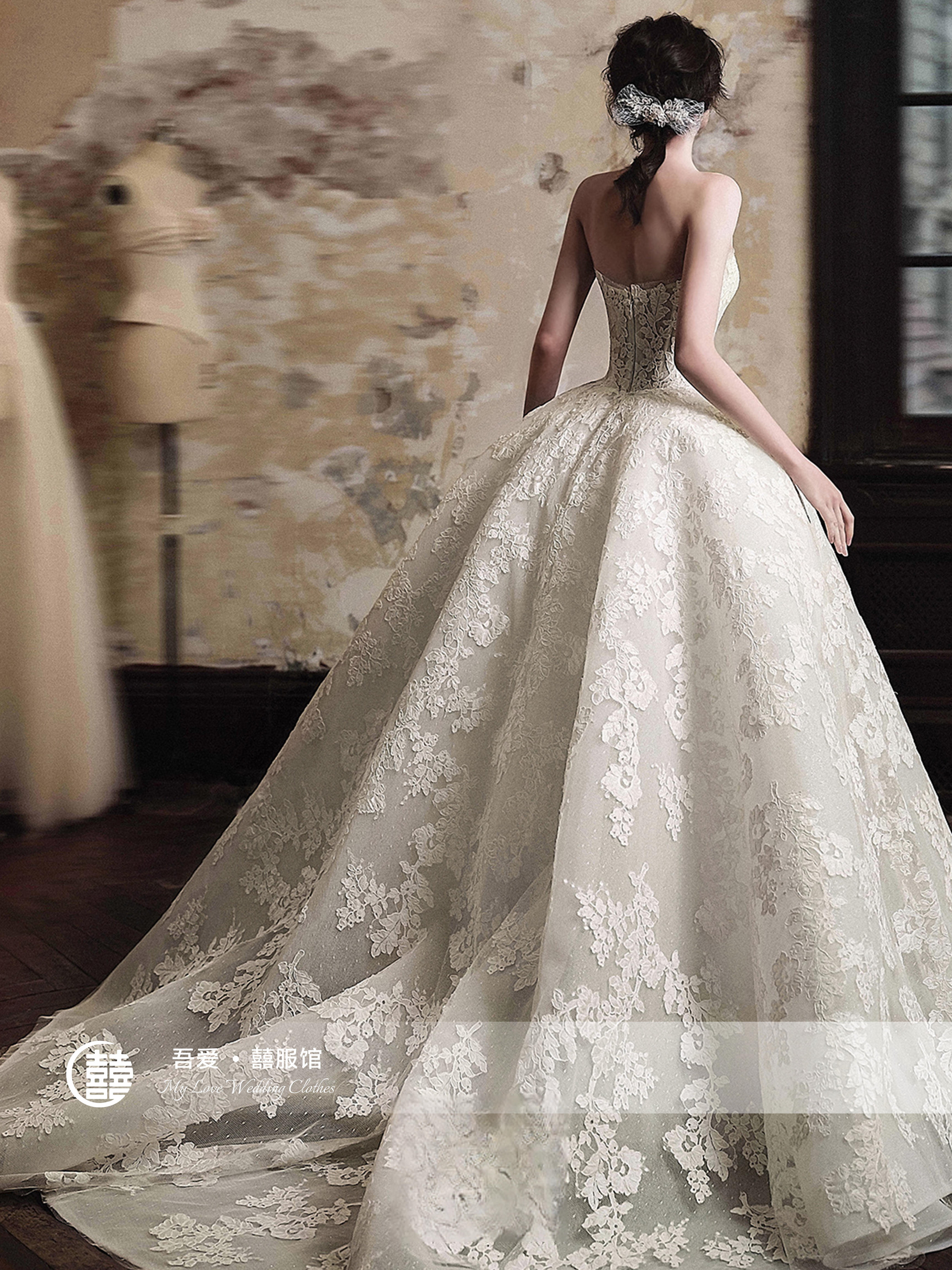 【吾爱囍服】蕾丝软纱大拖尾