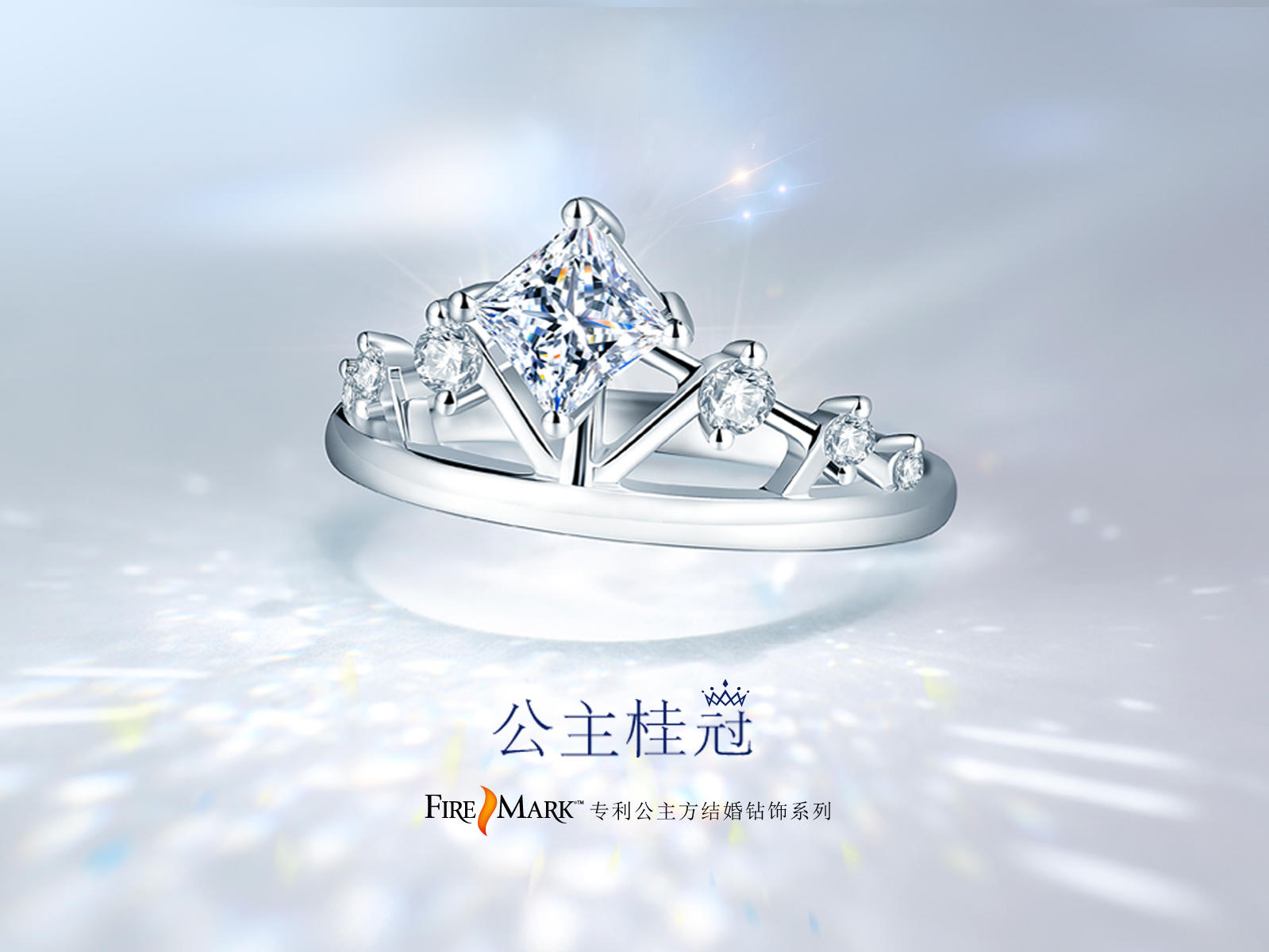 FIRE MARK专利方钻视觉更显大,平均95%强光反射,双冠面技术加强火彩,2EX切工GIA认证。