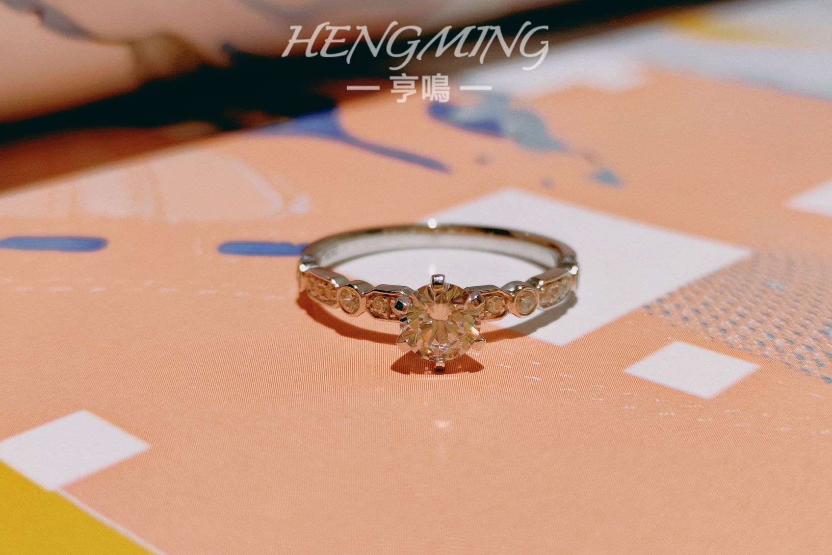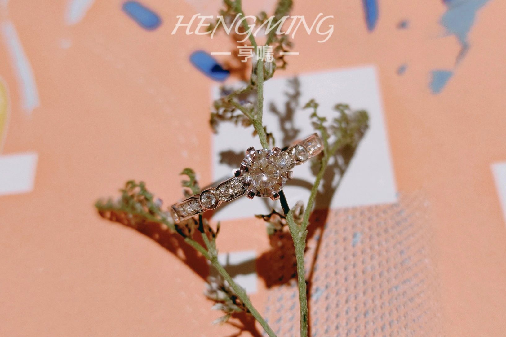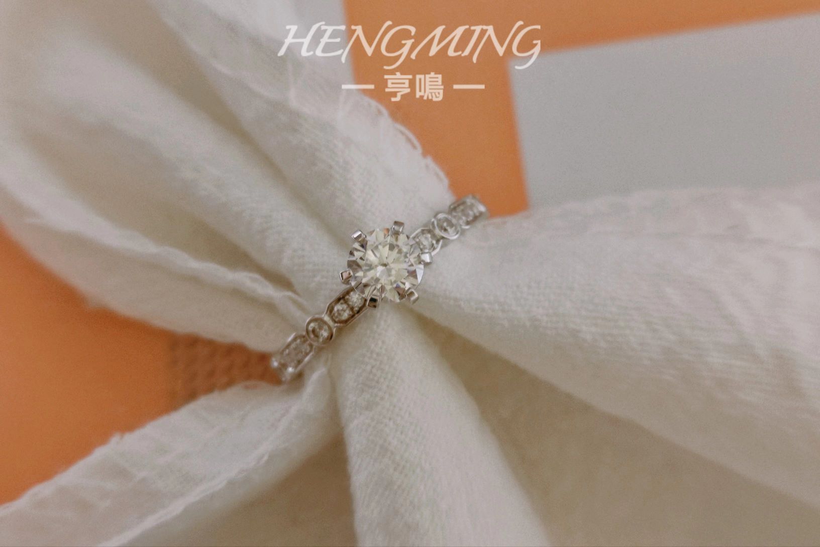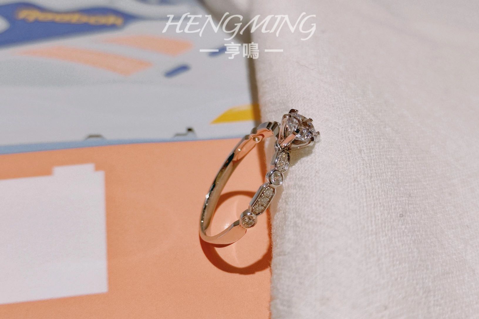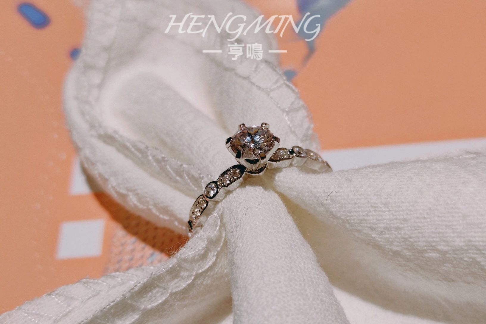 『我瞒着宇宙山河,悄悄想了你一下。』<br />——【朝露】——<br /> <br />简约与设计感并存的一款钻戒,经典六爪拥抱主钻,戒臂用不规则几何图形镶嵌小钻,如露珠滑过叶脉留下的踪迹。上手清新精致,又因为不规则几何的戒臂造型展现满满设计感