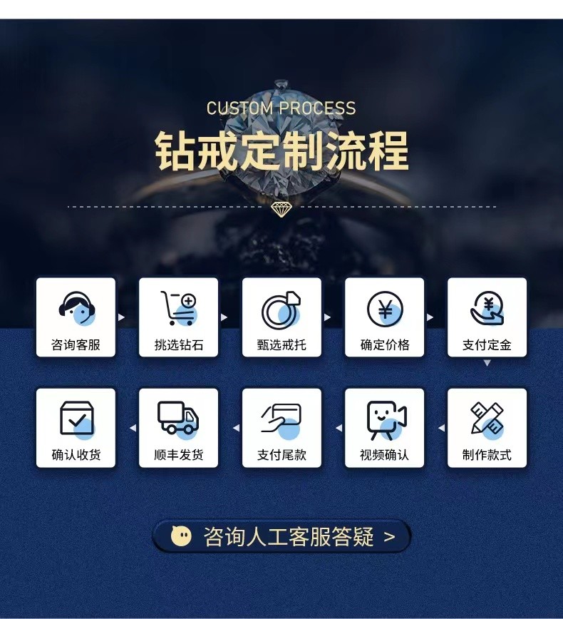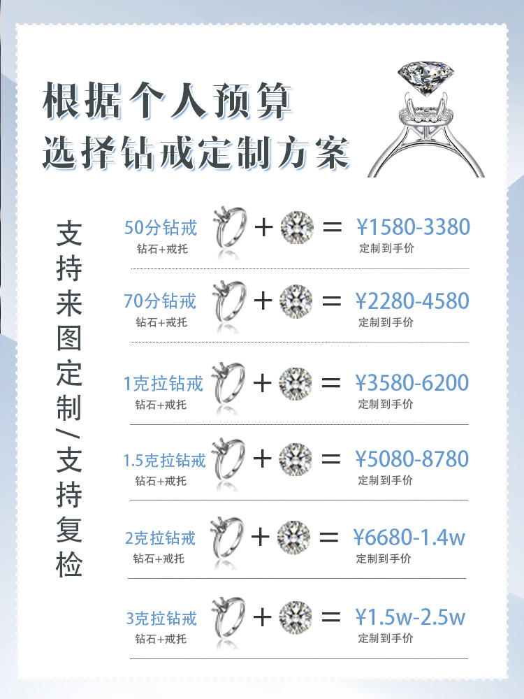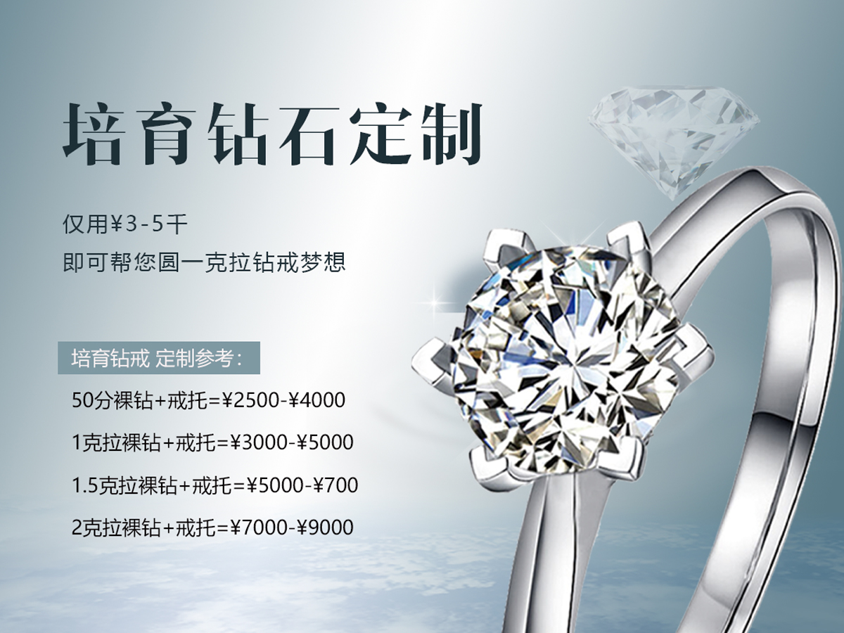 30分-5克拉培育钻石定制,店内均有现货<br />可接受来图定制,可店内选款<br />注意事项:<br />1. 请提前和线上客服预约<br />2. 接受在线下单定制,定制工期7-20天不等,详询客服<br />3. 接受来图定制<br />