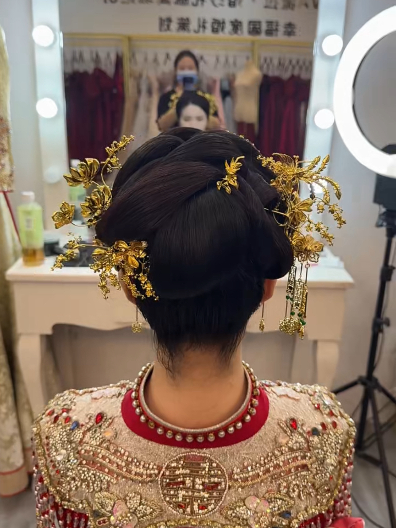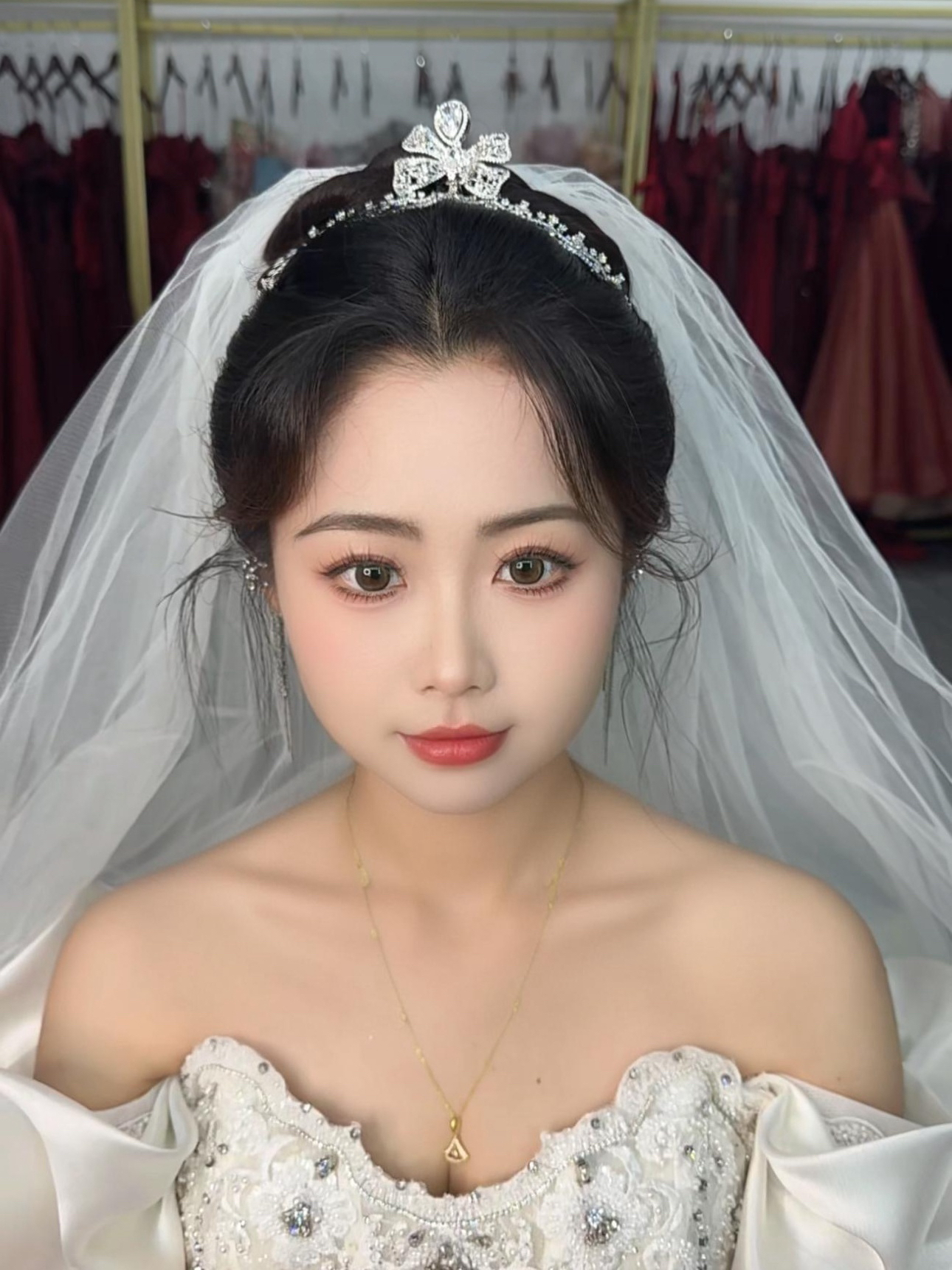 “婚礼纪上联系了好几家,私下也做过对比,最后还是选择薇拉家,价位比较划算,比其它家虚报价位的合适多了,而且服装的品质也比其它家好,老板娘也很实在,我定的套餐里只送了两套伴娘服,可是我有三位伴娘,于是想让老板娘多送一套,没想到她很干脆的答应了,好开心,试妆的时侯也一直奈心的跟我沟通,问我喜欢什么样的造型,试妆效果也非常满意,我是单眼皮,比较薄的那种,不容易调双,试完妆后的双眼皮非常的自然,感觉比我拍婚纱照的化妆师化得好,特别喜欢龙凤褂的造型和头饰,小姐妹们也夸好看,真诚的推荐这家店铺,小仙女们别错过了呀