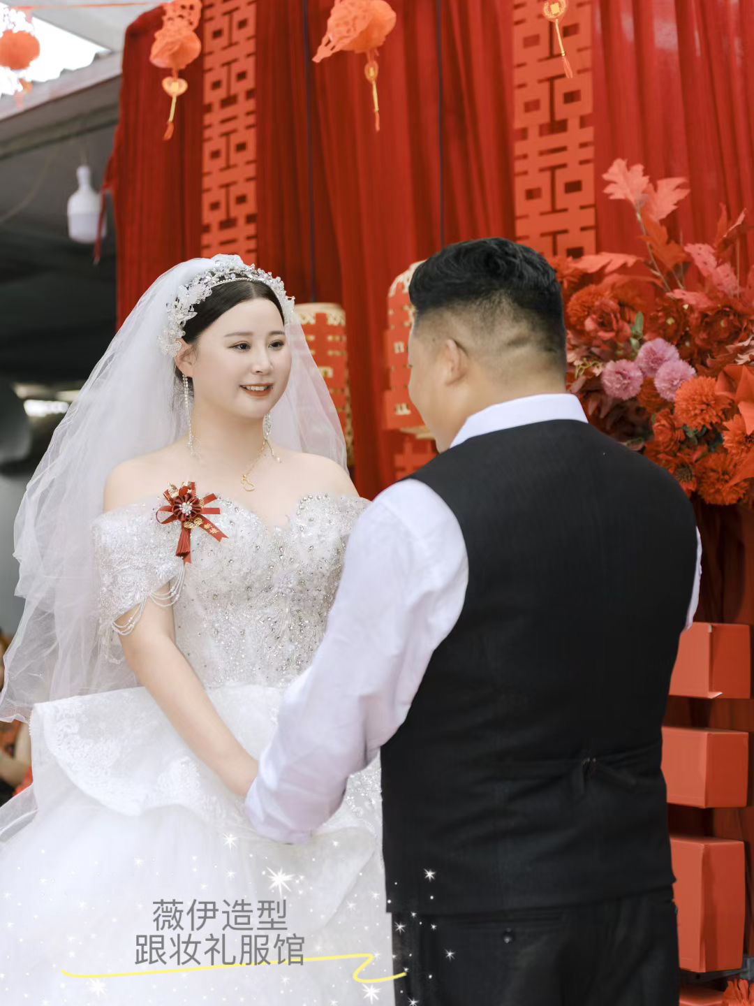 “完美的婚礼,一直在外地工作,结婚前几天回到老家,之前在网上沟通,回来后进店试了衣服和化妆,婚礼当天效果很好,化妆师忙前忙后的给我整理婚纱和补妆。